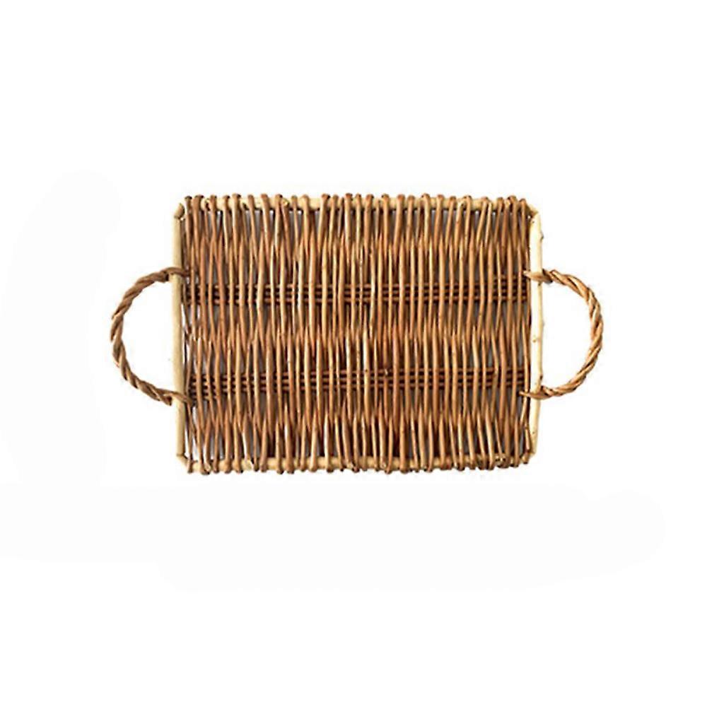 Rattan Hand Woven Tray Round Square Severing Tray Food Storage Platters Plate Breakfast Drinks Fruit Snack for Coffee with handle