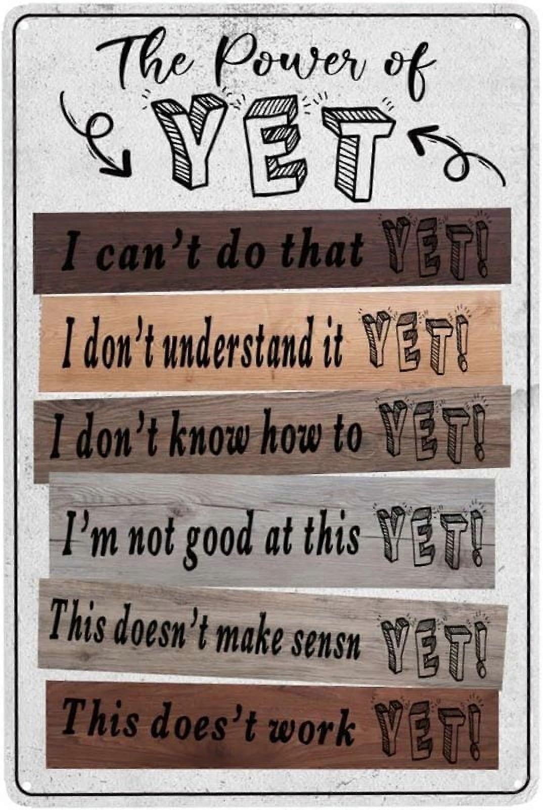 Wall Art Metal Signs School Decorative Retro Tin SignThe Power Of Yet Vintage Cute Painting Posters Iron Poster For Size: 16 x 12 Inches