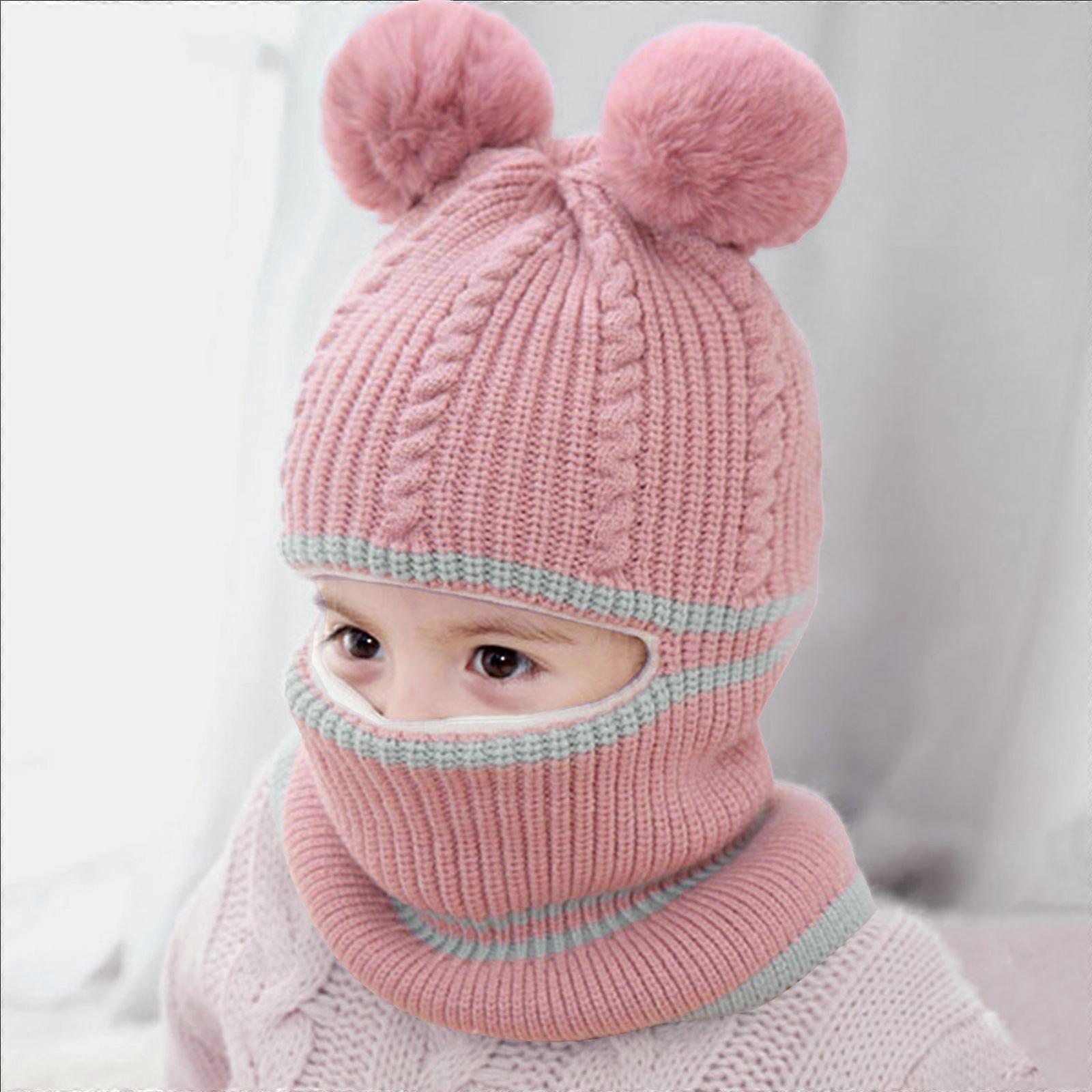 Pom Pom Cap For Baby Head Warmer Kids Neckerchief Warm Winter Knitted Solid Color Winter Hooded Hat Neckerchief Tibetan