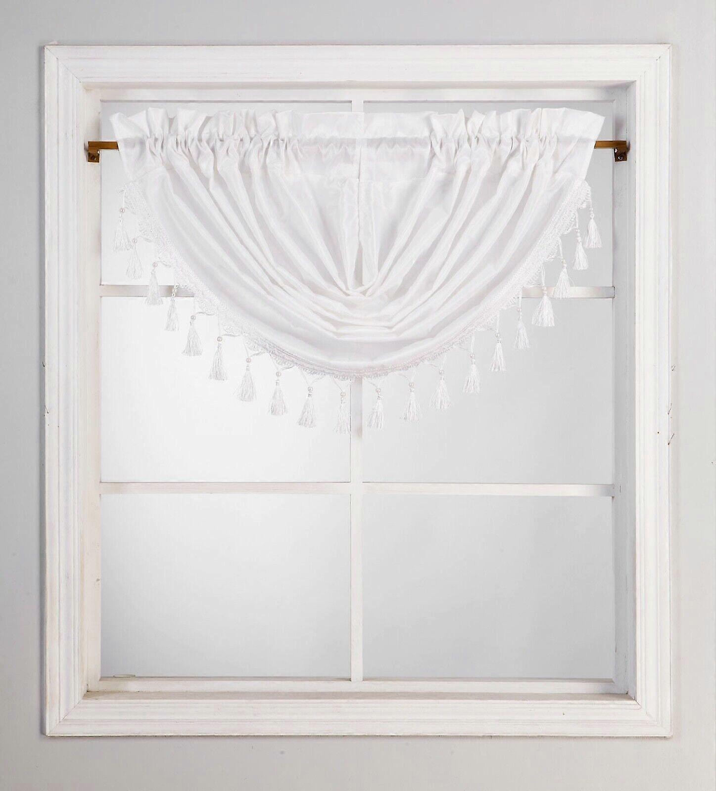 Pocket Window Curtain Valance Waterfall with Pearls on Tassels Kitchen