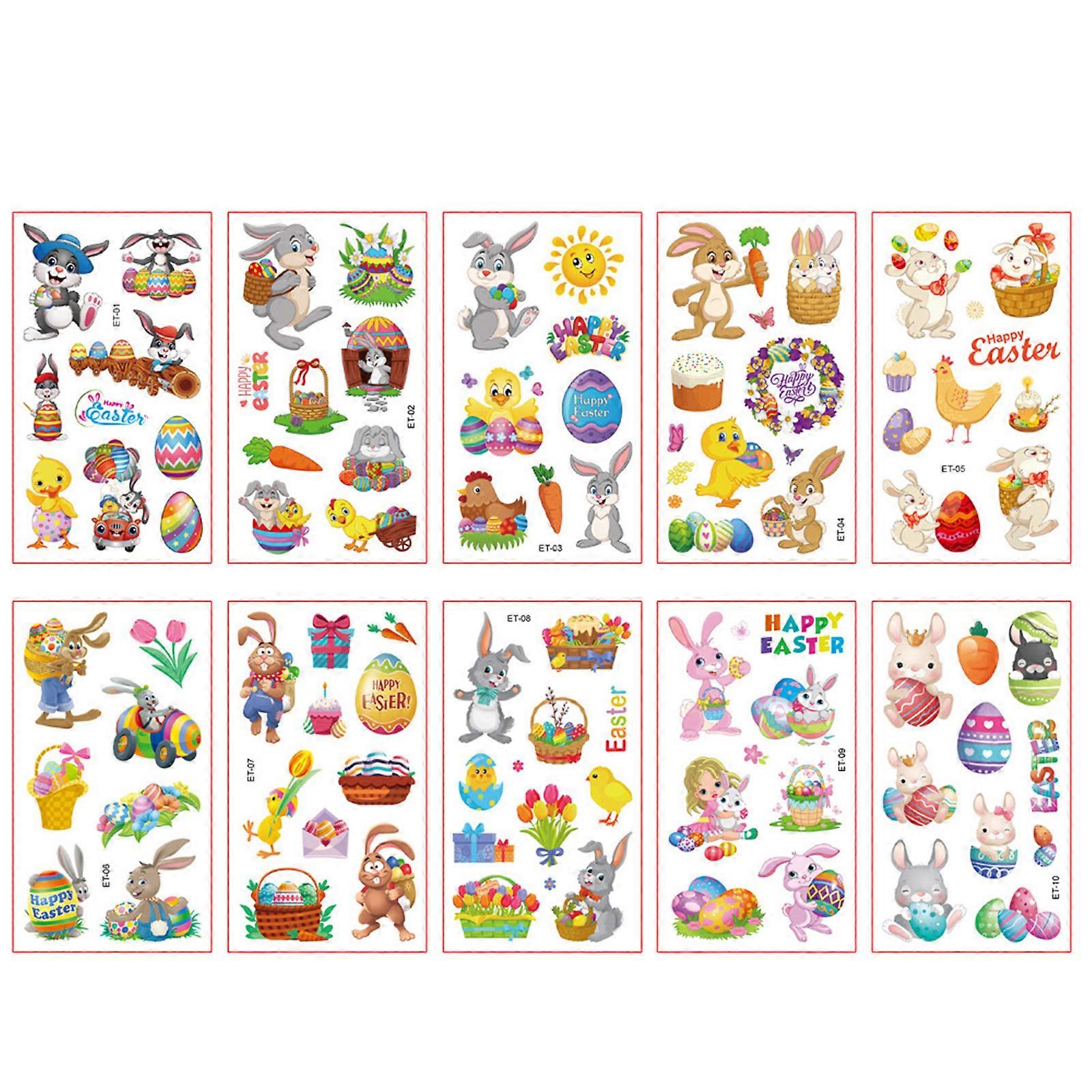 10pcs Egg Children Cartoon Easter Body Stickers Fake Temporary Tattoos Egg Party Gift for Children Party Supplies Multicolor
