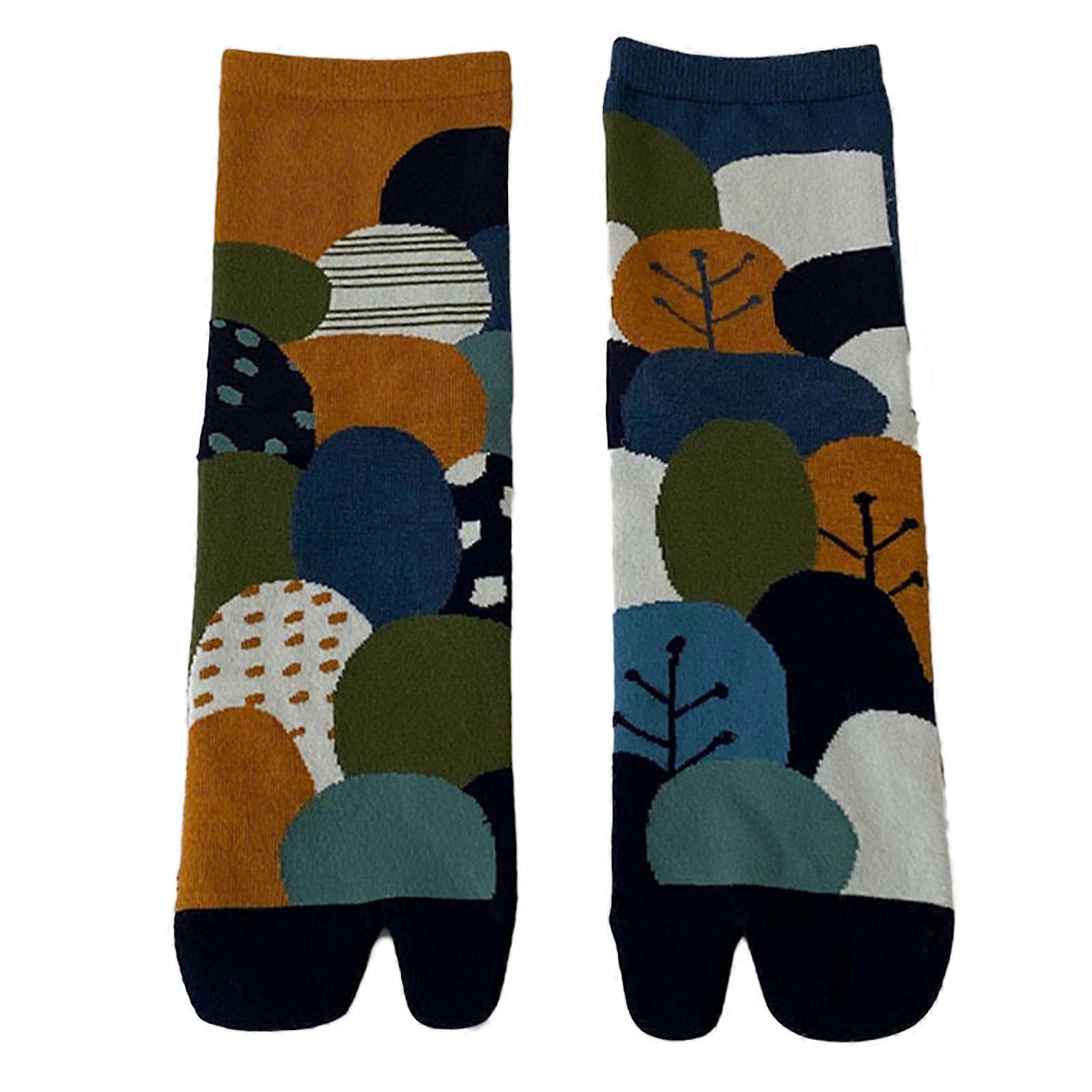 Women Men Split Toe Kimono Tabi Crew Socks Japanese Style Colorblock Abstract Dot Striped Print 2 Finger Flip Flop Sandal Middle Tube Hosiery trees