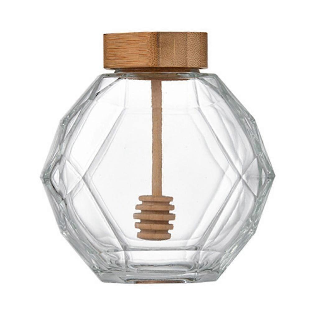 Honey Pot Glass Honey Jar with Wooden Dipper and Cork Lid Cover for Home Kitchen, Clear, 8 Ounces