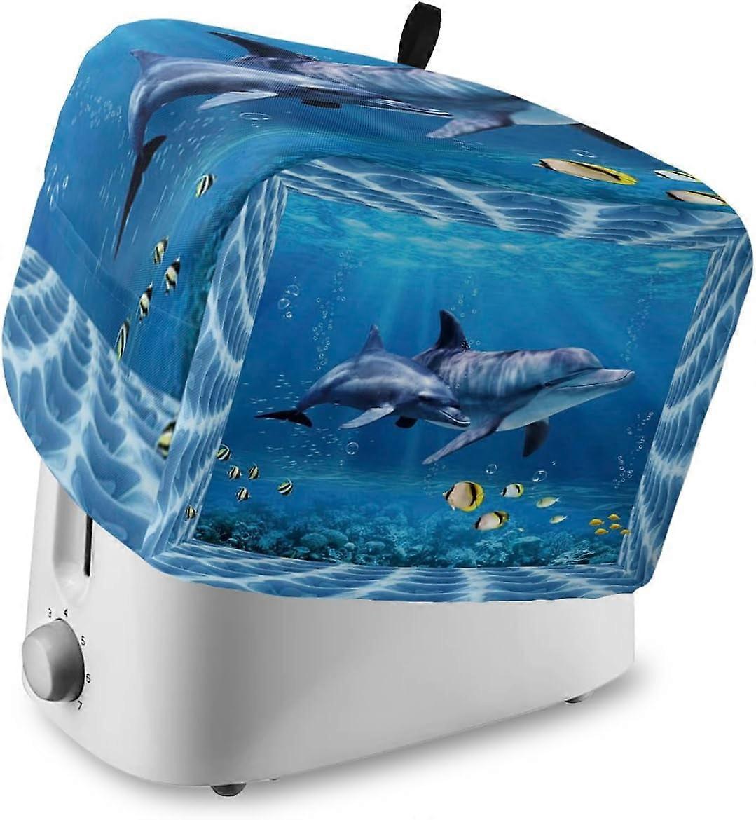 Toaster Dust Cover, Dolphin Blue Underwater World Design, Washable 2 Slice Toaster Cover, Dust-proof & Fingerprint Protection