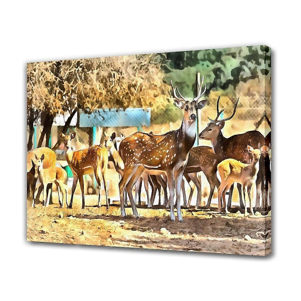 Herd Of Spotted Deer Under The Tree Poster Decorative Painting Canvas Wall Art Living Room Posters Bedroom Painting,Frame-style,12x18inch(30x45cm)