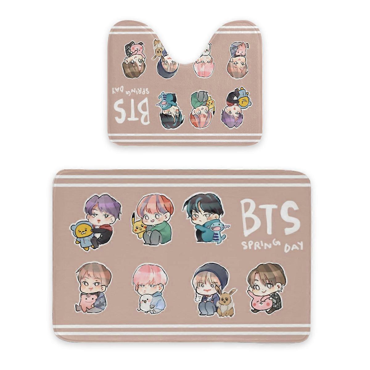 BTS Bathroom Rug Set 2 pieces - Fluffy soft bath mat and U-shaped toilet rug, non-slip machine wash/dry absorbent shower rug and bath mat set-61*90cm