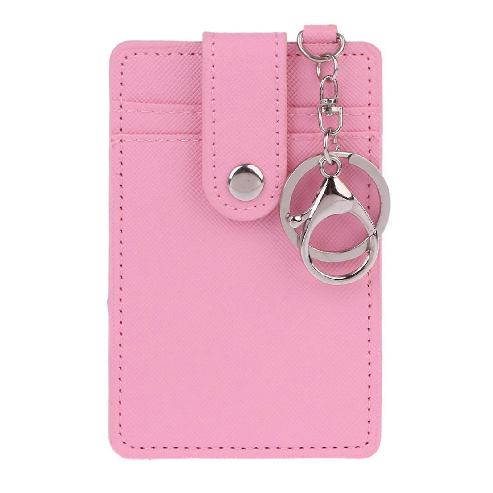 Business Card Holder For Men Women PU Leather Wallet Purse Multi Slot Design Credit Cards Key Holder for Women and Men Pink