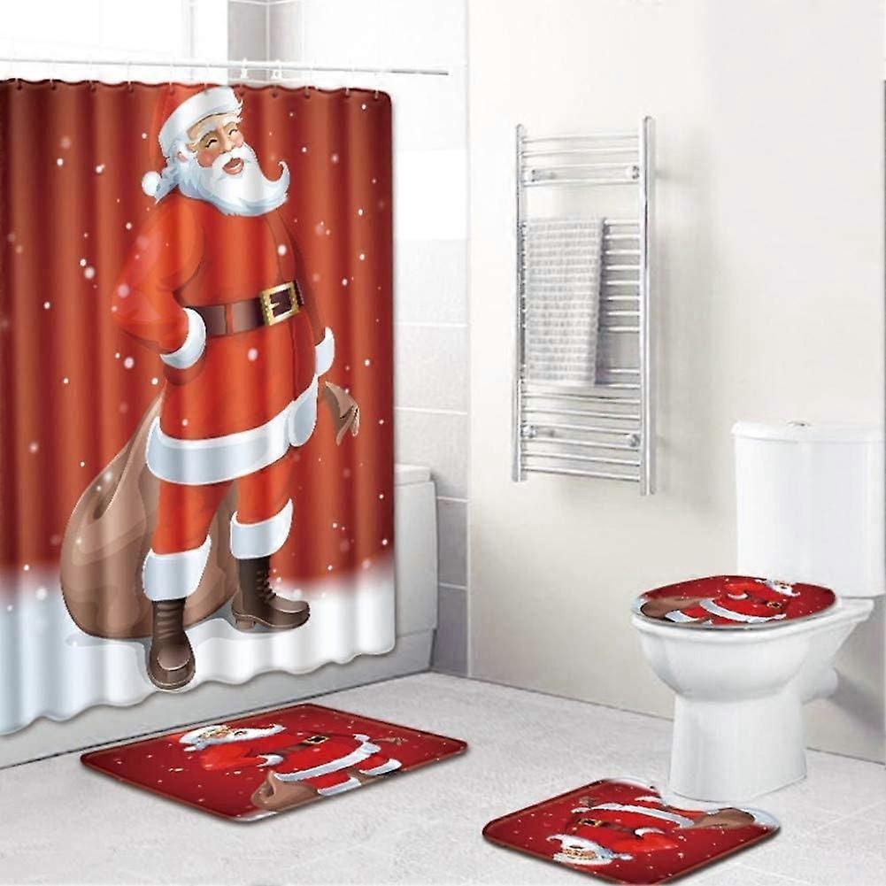 Viflosae Christmas Decorations 4pcs Set - Compatible with Bathroom Pedestal Rug, Lid Cover, Bath Mat, Shower Curtain