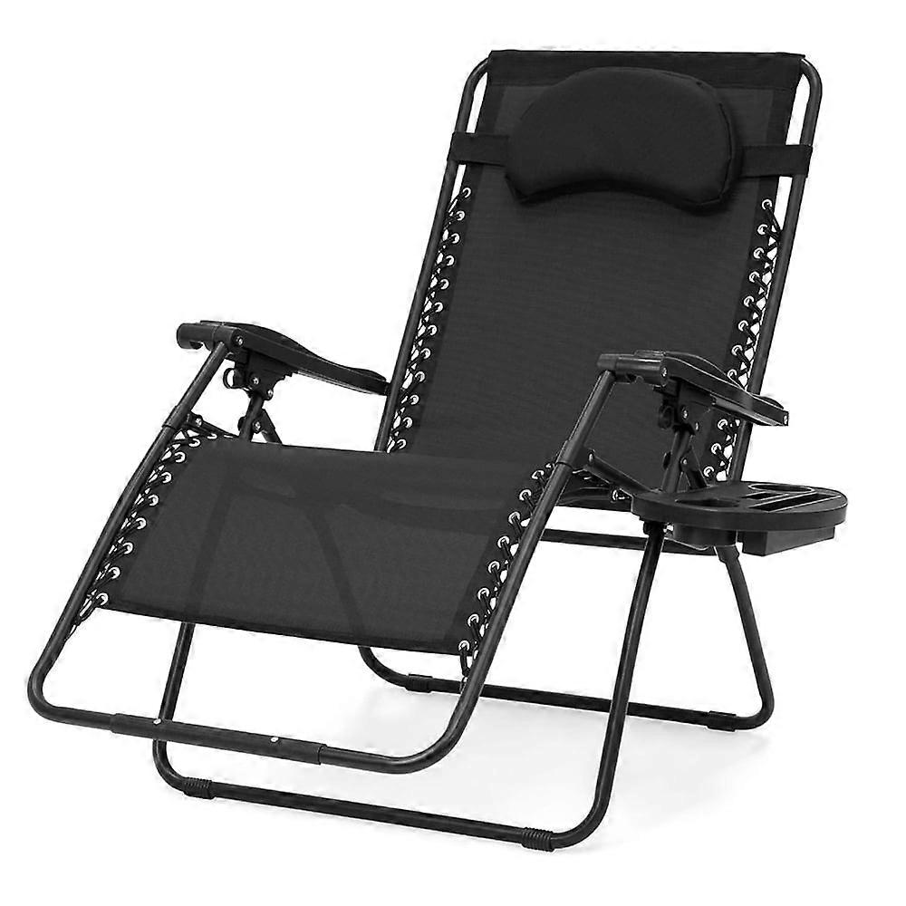 Oversized Zero Gravity Chair, Folding Outdoor Patio Lounge Recliner w/Cup Holder Accessory Tray and Removable Pillow - Black
