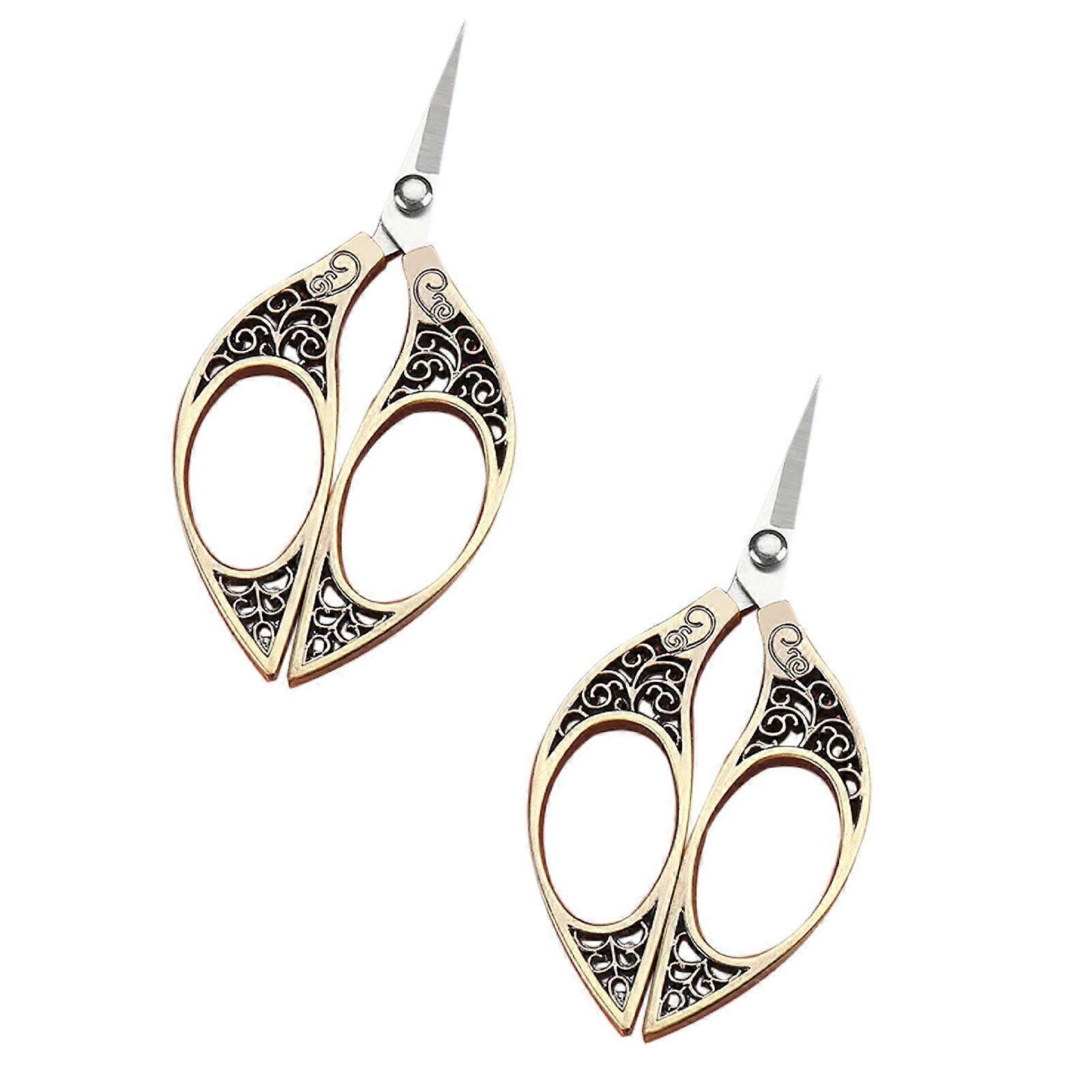 Xubond Retro Small Scissors, Stainless Steel Thread & Pizza Cutter, Office & Kitchen Use, compatible with Home, Handmade Gold Cutlery Set