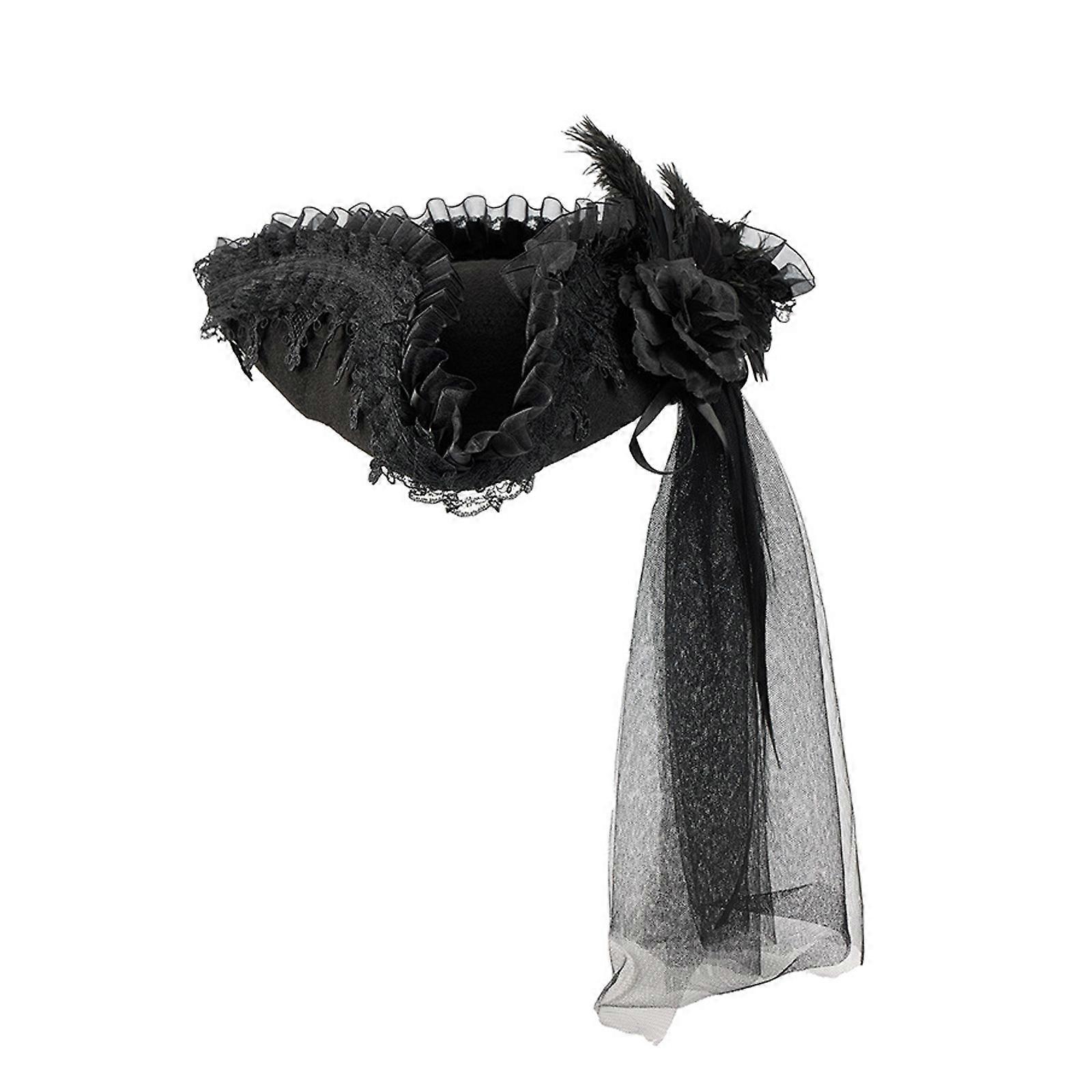 18th Century Pirate Captain Tricorn Hat With Adjustable Lace And Long Veil For Colonial Costume Halloween RolePlay Game Multicolor