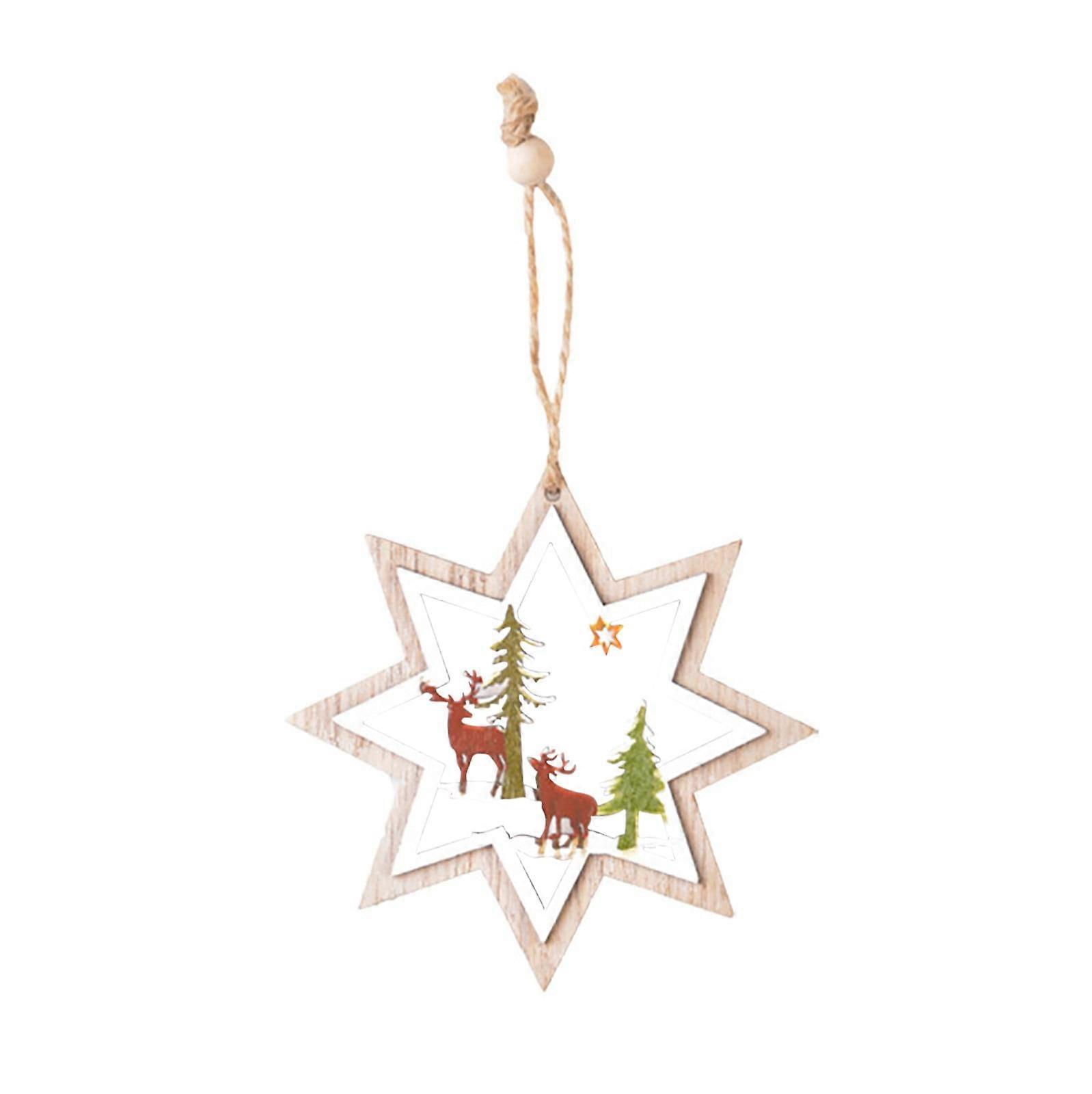Begine Christmas Double-Layer Pendant, Wooden Hollowed Out Tree Decor, Compatible with USA Party Decoration, Pendant Gift
