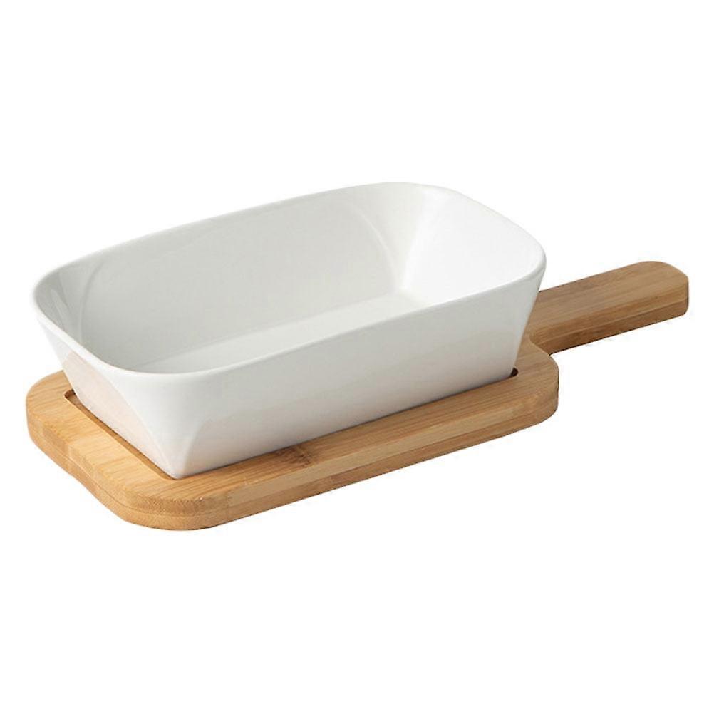 Eease Zerodeko White Square Dish Set with Wooden Base for Baking and Roasting