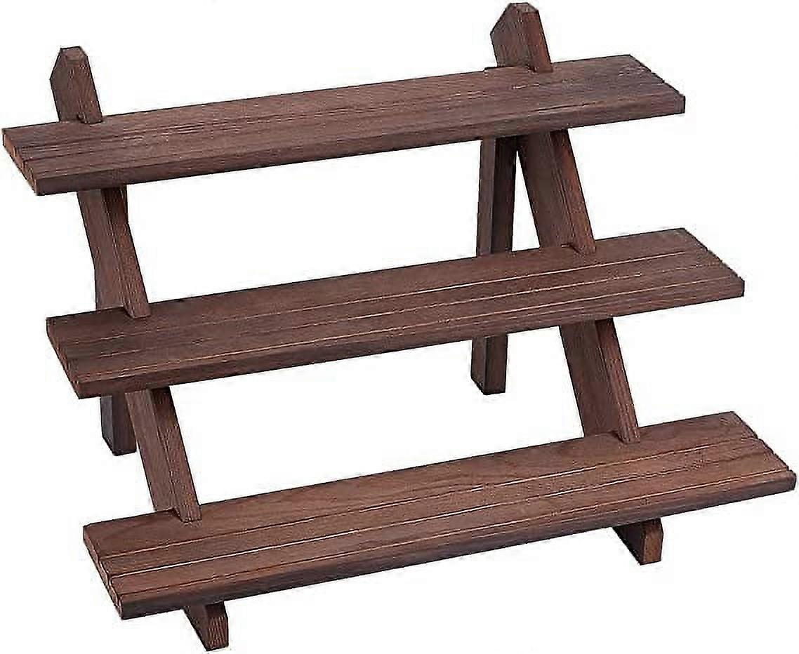 3-Tier Earring Display Stand Coffee Color, Compatible with Jewelry Retail & Storage, 15.3x12.28x10.12, Detachable Wood Riser with Groove