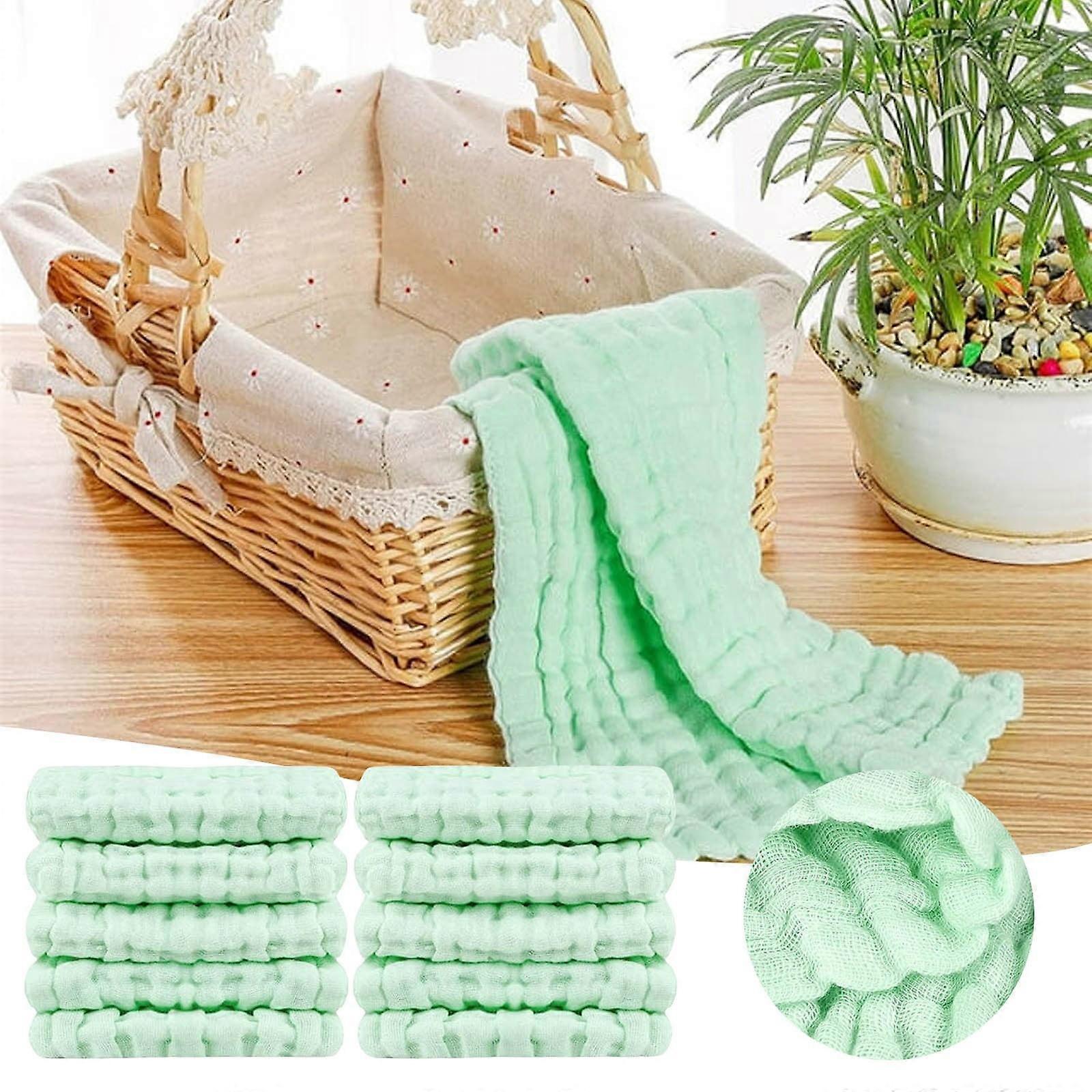 10PCS Baby Muslin Burp Cloths Cotton Hand Washcloths 6 Extra Absorbent Soft Towel Kindergarten Facecloth Green