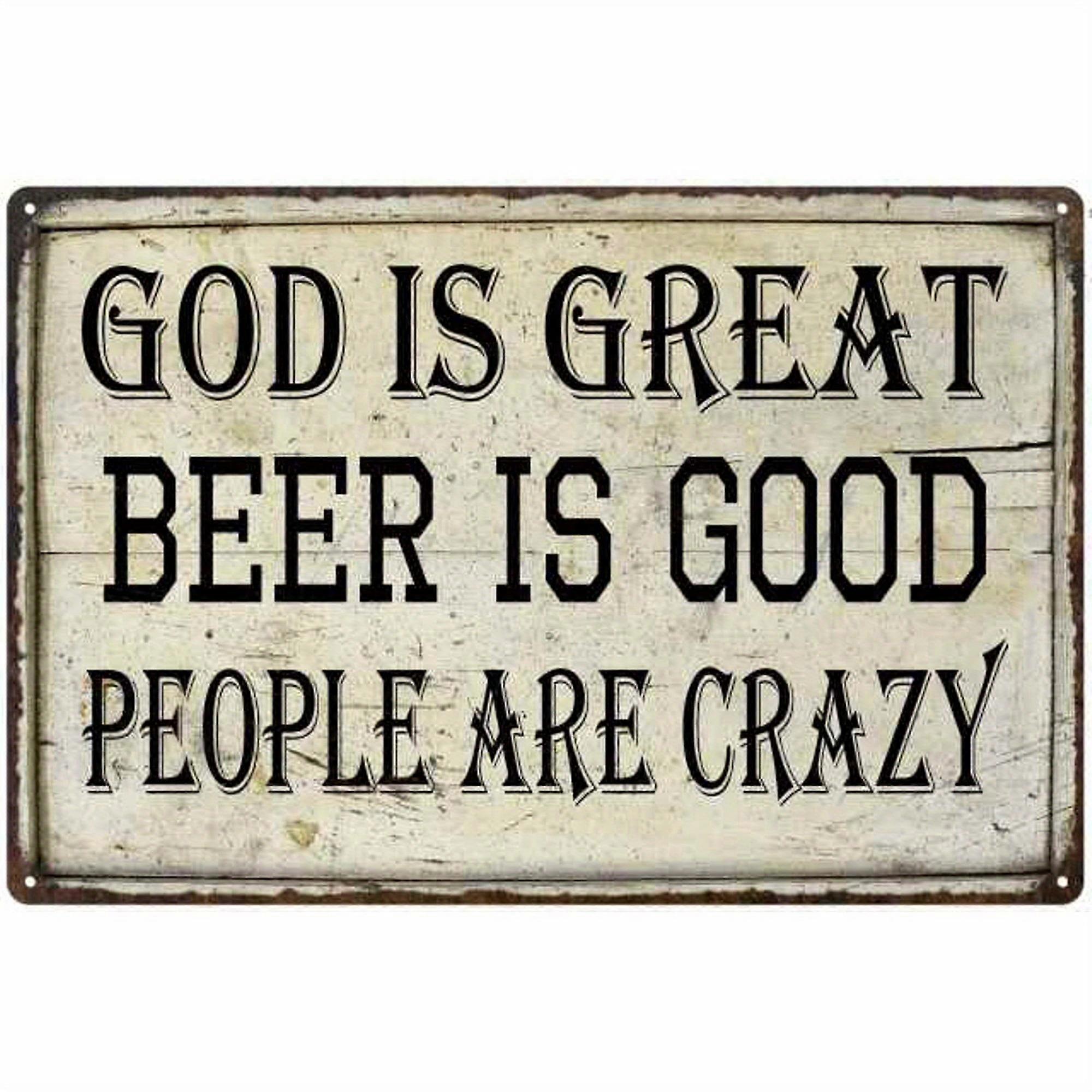 1pc, God Is Great Tin Sign, Beer Is Good Bar Pub Funny Gift Metal Sign (8 "x12"/ 20 Cm * 30 Cm), Bar Decor, Scene Decor, Wall Decor