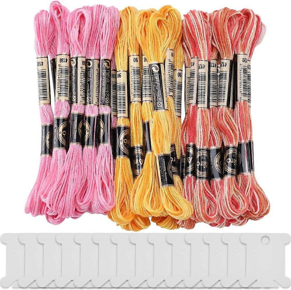 30 Skeins 240m Polyester Embroidery Floss Kit, 3 Colors, 6-Ply Gradient Threads with 14 Pcs Plastic Winding Boards for DIY Craft