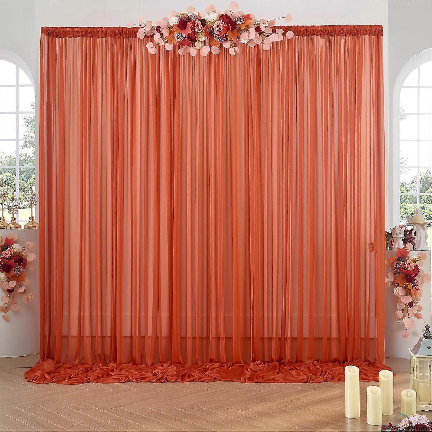 10ft×10ft Wrinkle Free Rust Chiffon Backdrop Curtain for Wedding Party, 2 Panels 5×10ft Slight Glimmer Terracotta Sheer