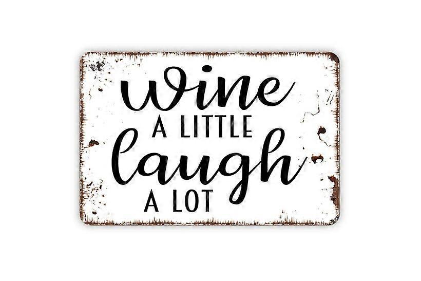 (Aluminum metal) Wine A Little Laugh A Lot Sign Funny Metal Sign Farmhouse Contemporary Modern Wall Metal Sign Size: 8 x 12 Inch
