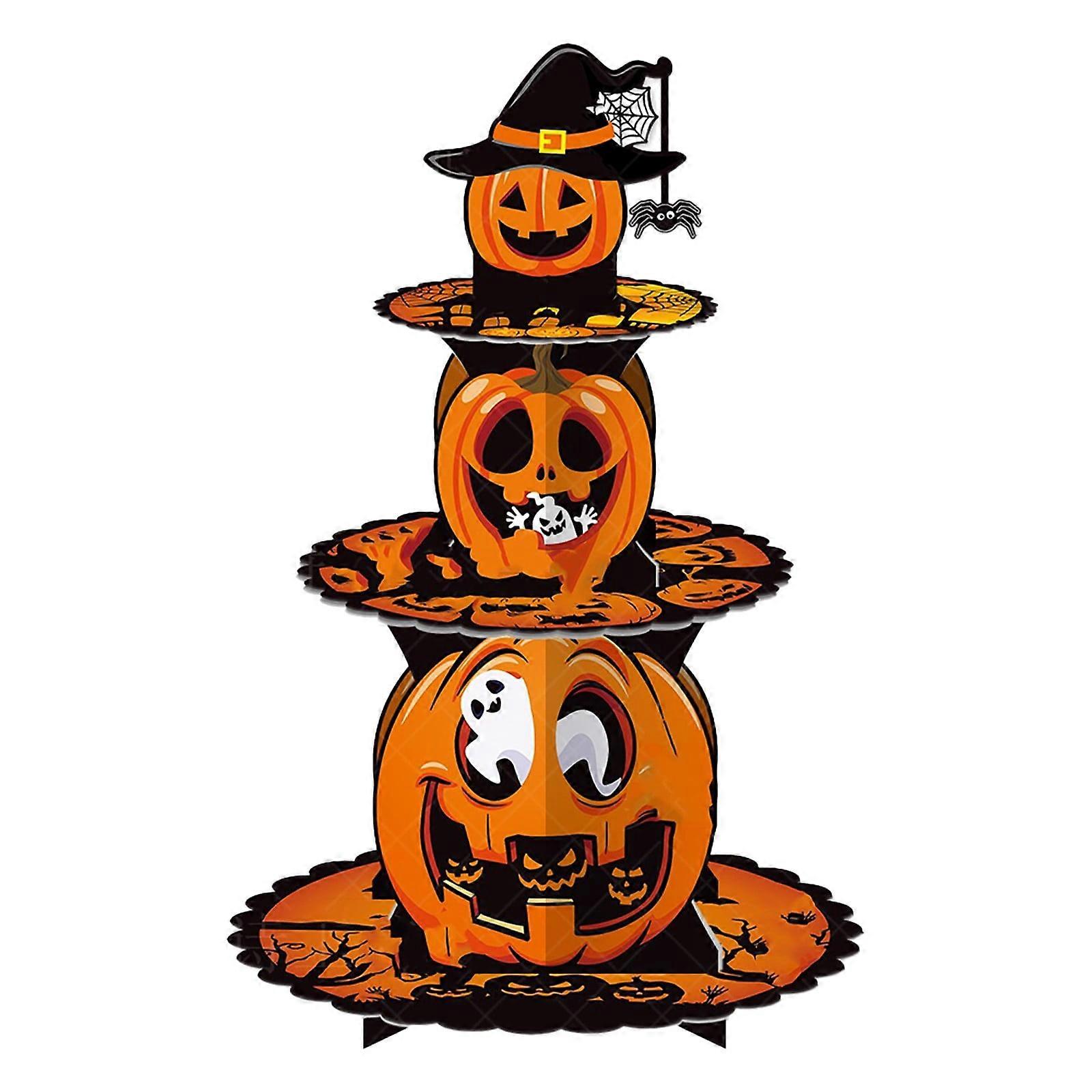 Tray Decoration Halloween Cupcake Stand 3 Tier Halloween Cupcake Stand Decoration Pumpkin Cardboard Stand for Halloween Trick Or Birthday Party Decor