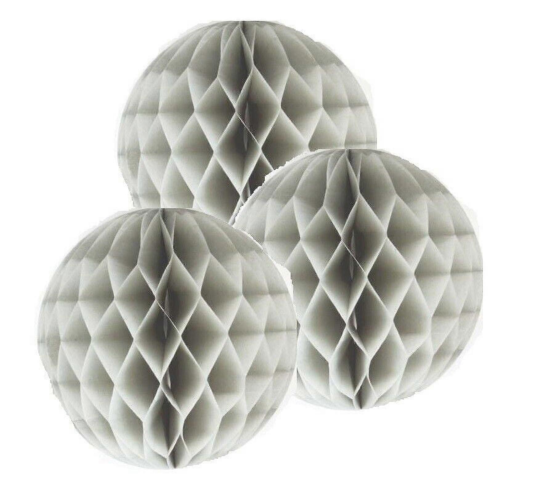 3xLight Gray 8" HoneyComb Round Tissue Paper Lantern Balls Pom Poms Wedding