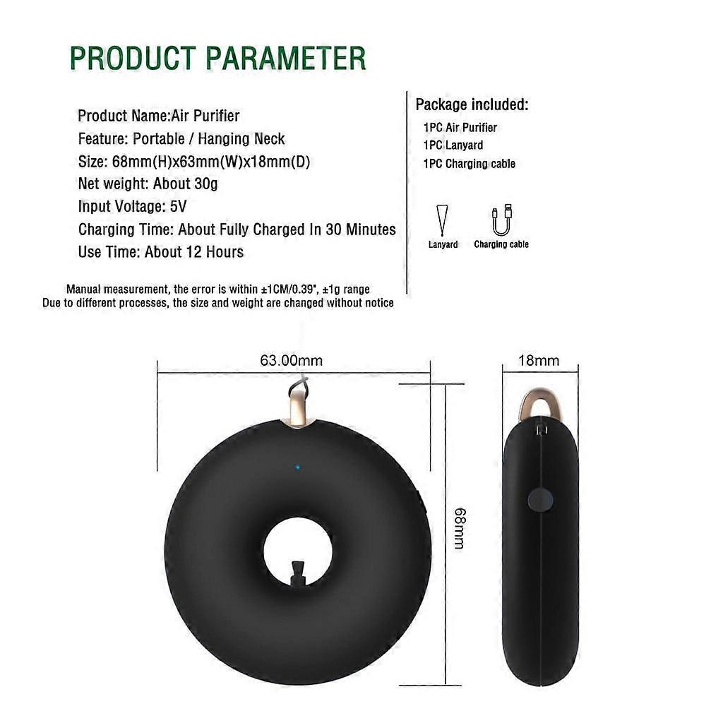 PAVEOS Portable Mini Purifier Necklace Wearable Negative Generator Low Noise Clearance Air Purifiers for Home Use Black A