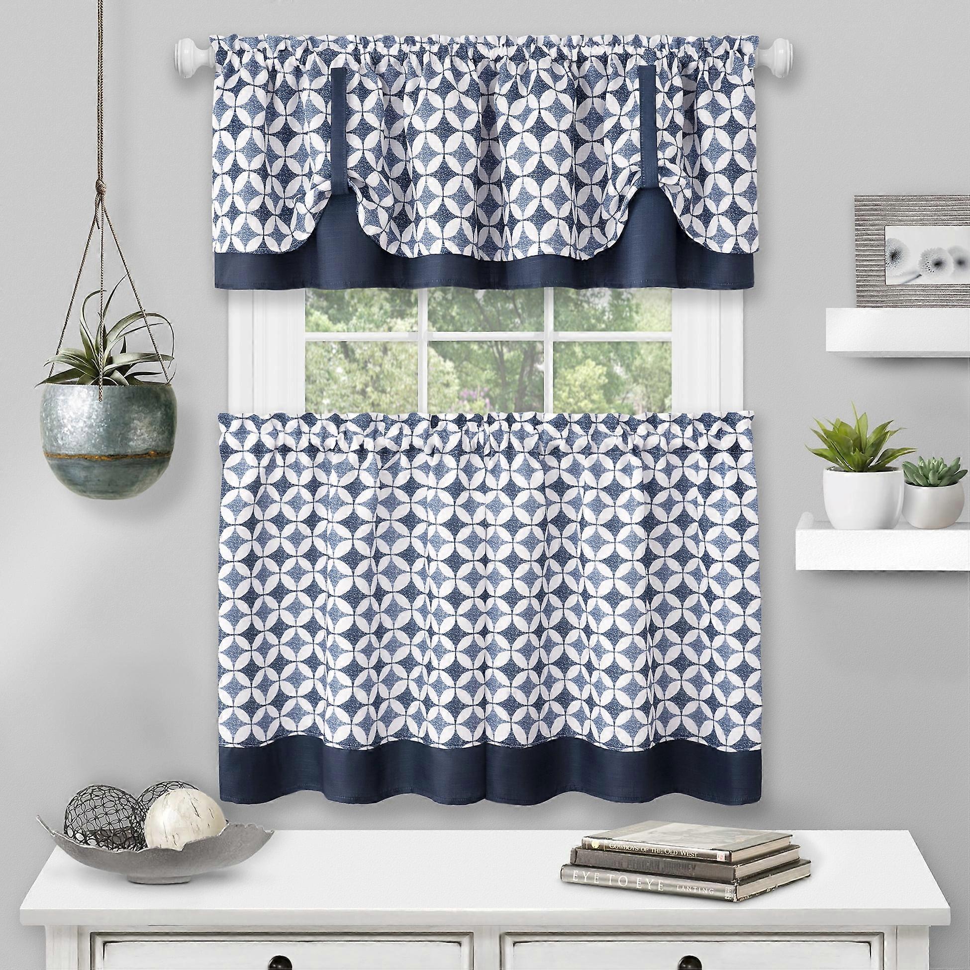 Achim Callie Window Curtain Tier Pair and Valance Set - 58" x 36" - Navy