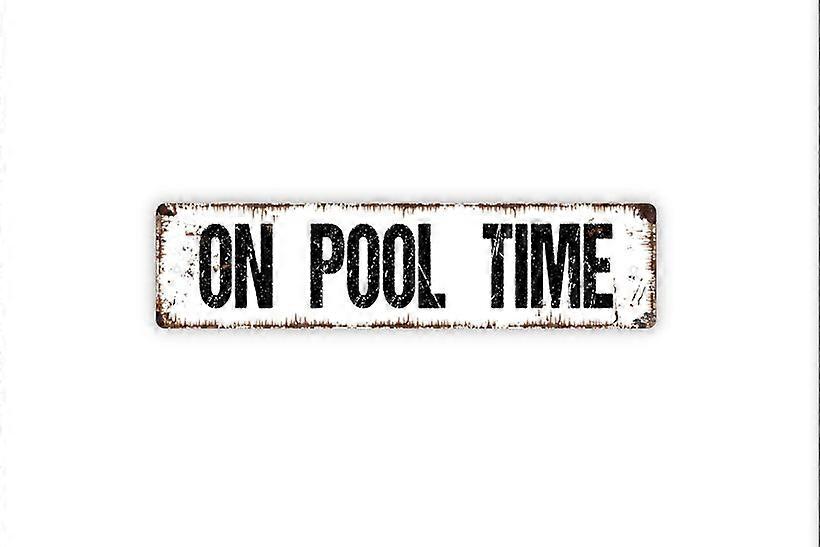 On Pool Time Sign Swimming Pool Hot Tub Rustic Street Metal Sign or Door Name Plate Plaque Size: 4 x 16 Inch