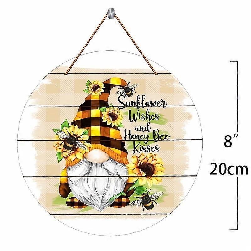 Farmhouse Wall Hanging Wood Plaque Sign Sunflower Wishes And Honey Bee Kisses Gnome Sign Wooden Home Decor Cabin Sign (8x8in)