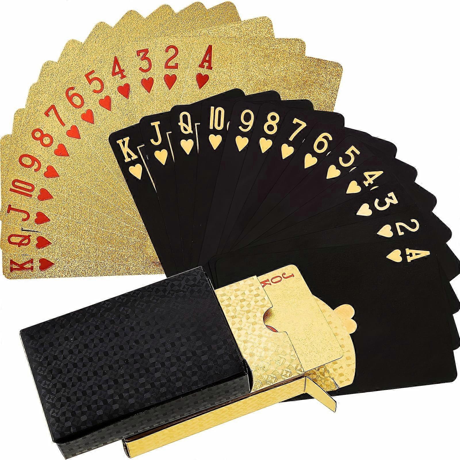 2 Decks Premium Waterproof PVC Playing Cards - 24K Golden Foil, Durable & Easy Shuffle, Compatible with Magic Tricks, Card Games, Collectors