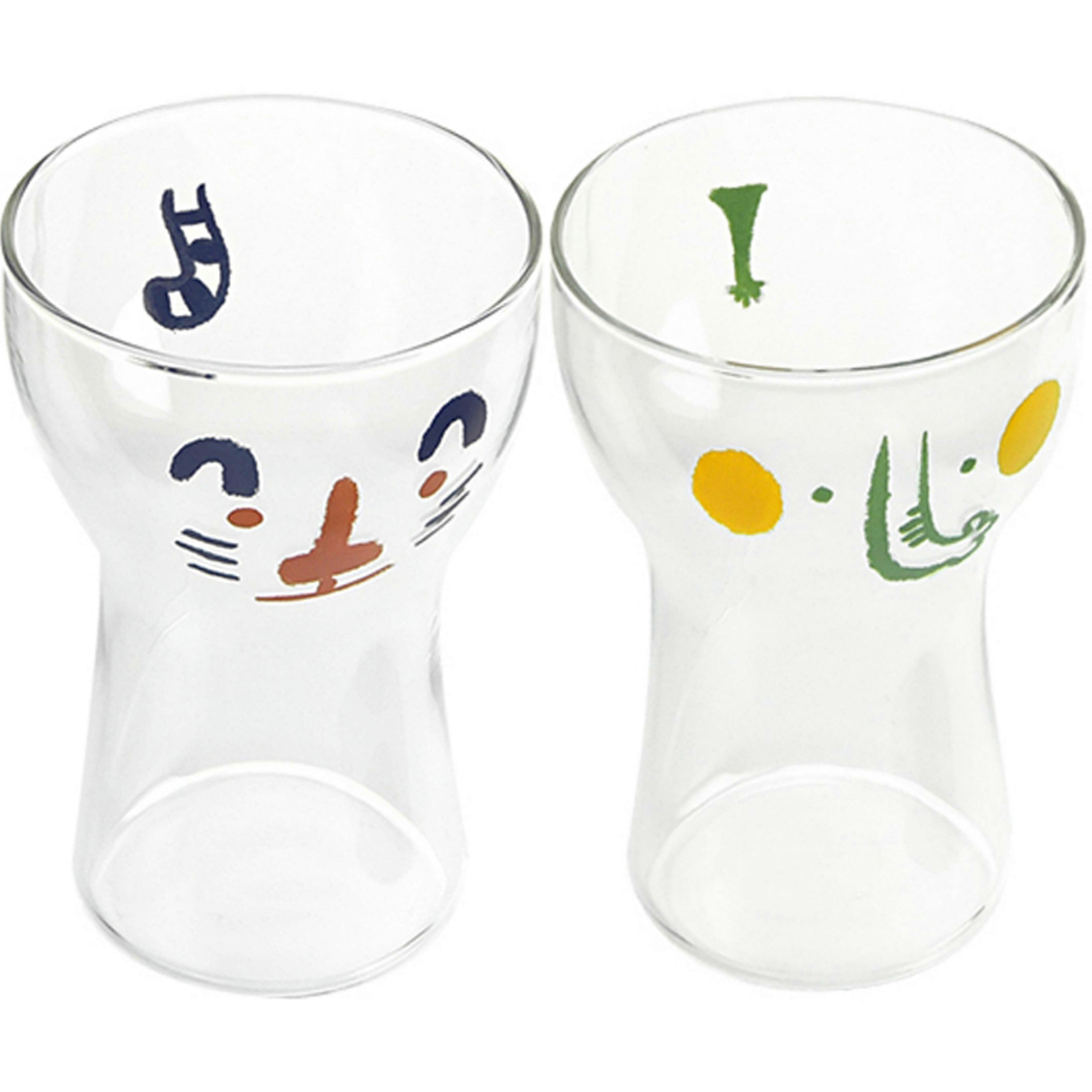 2pcs Cartoon Printed Glass Cups, Heat-resistant Drinkware Set, Compatible with Milk, Water, Juice, Tea & Coffee