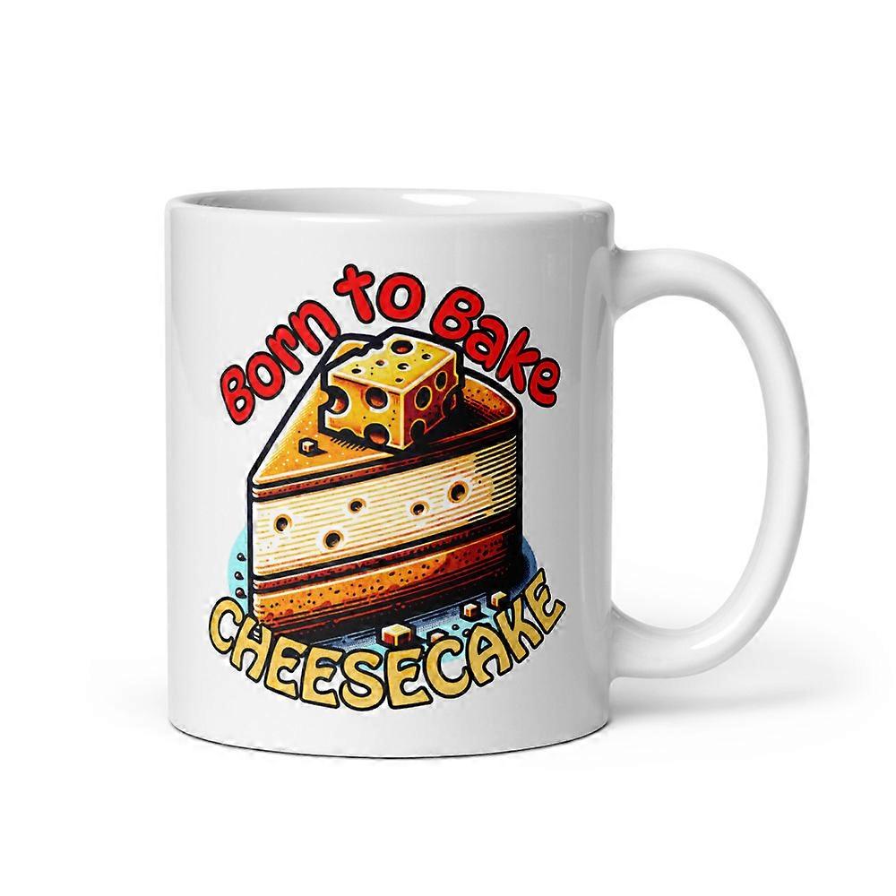 Cheesecake Dessert Lover White Glossy Mug, Born To Bake Cheesecake (11 oz)