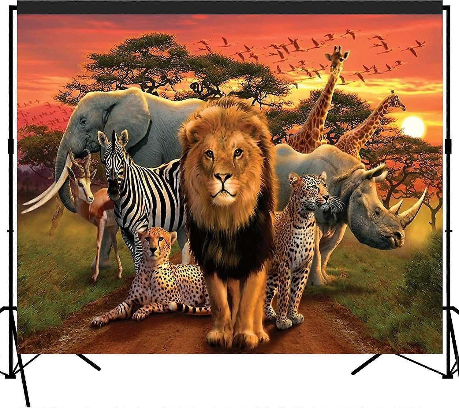 About this item Hand ed look wildlife scene setting, depicting unique exotic animal in their natural jungle habitat. Realistic animals galore includes elephant, antelope, zebra, leopard, lion, rhino, giraffe, crane and more. Offer an exotic mood to your special events or parties. Adult and children birthday party banner, teens bday party backdrop, welcome sign, signage, poster, sign, birthday cake table decoration, photo studio photography background, video photography studio fabric backdrop, party scene setters, photobooth props for shooting, school scientific or educational events, holidays, occasions, functions etc. Made of vinyl. Durable seamless,reuse,not reflective. 7x7 feet ( 2.1x1.7m ). With hang holes and pole pocket. Stand will not be included. You can 1 blu-tac / stick it and hang on wall; 2 hang with hook on wall or curtain rail ; 3 the item is with pole pocket for you to hang on a photography support stand ( as photo display ) .