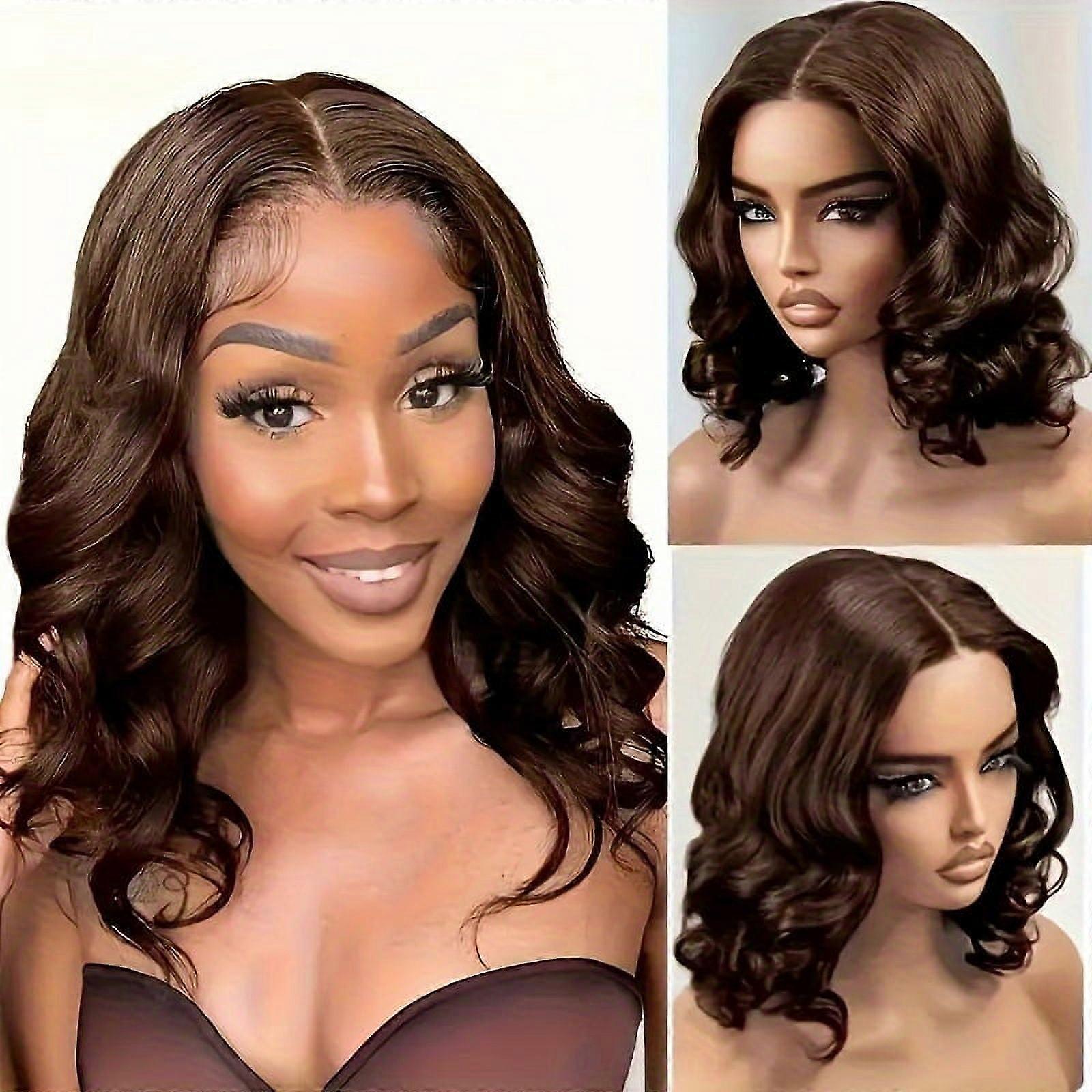 200% Density 13x4 Bob Wig, Chocolate Brown Short Body Wave Lace Front Human Hair Wig, HD Lace, Pre Plucked, Chestnut Brown Blunt Cut