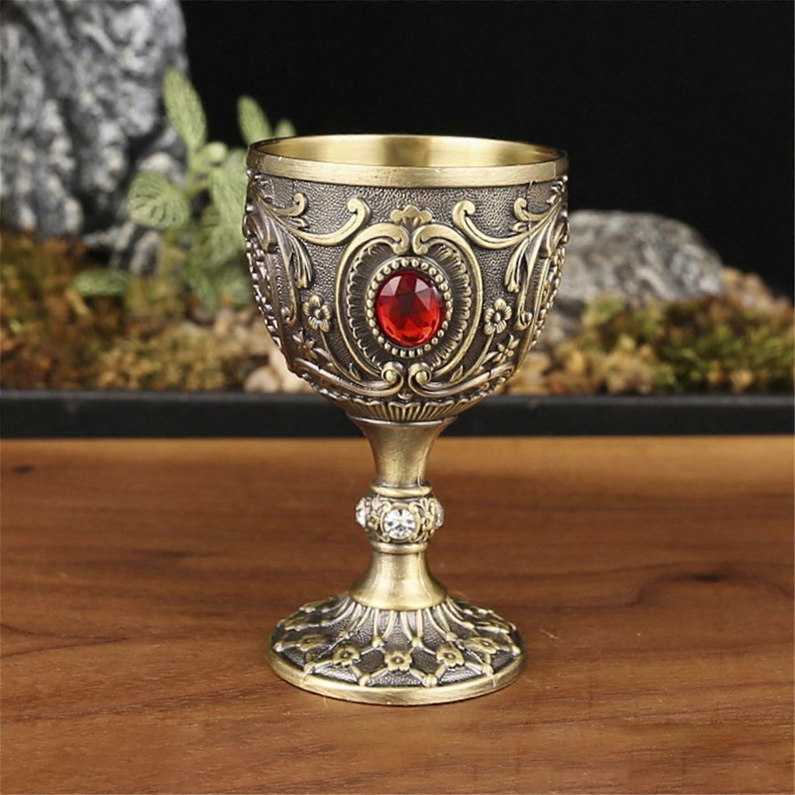WinysinVintage Medieval Goblet Drinking Glass Party Supplies Handmade Novelty Engraving Metal Wine Cup Desktop Decoration