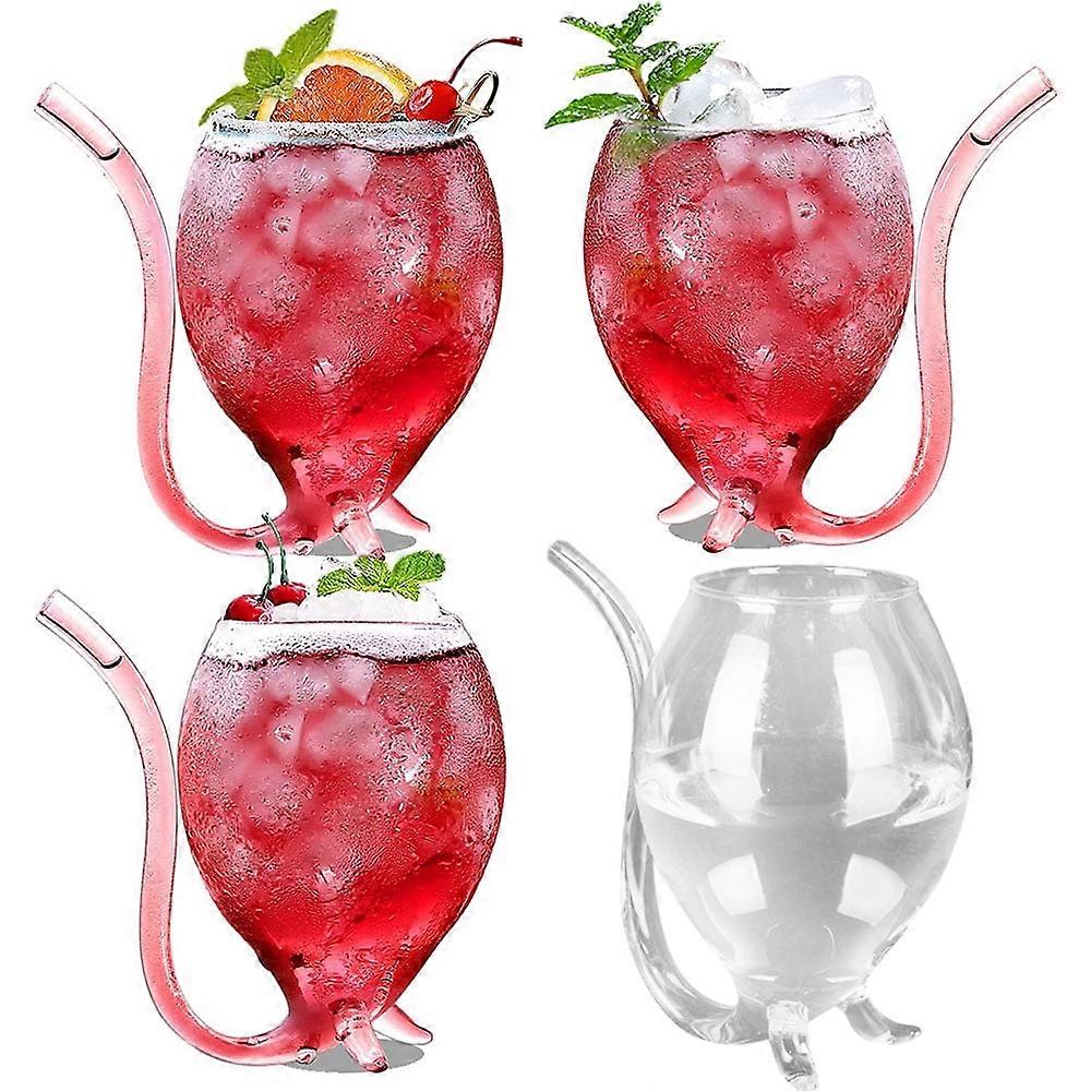Aosijia 10oz Cocktail Wine Glasses Set of 4 with Built-in Straw, Compatible with Home Bar, Party, Halloween Decor, Clear Goblet Glassware