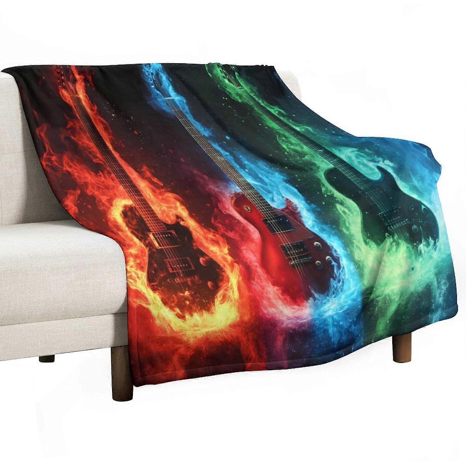 Red Green Blue Fire Electric Guitar Super Soft Blanket 30"x40" - Flannel Microfiber, Warm & Cozy for Couch, Bed, Sofa