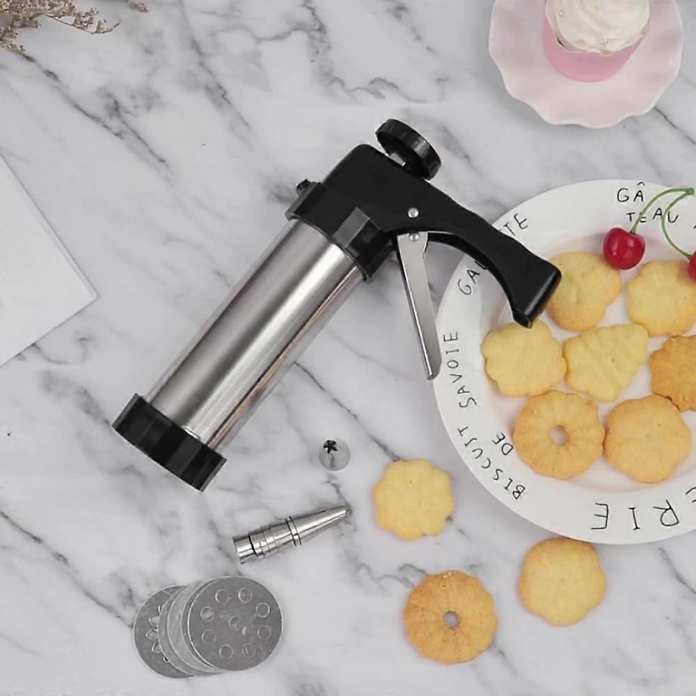 Specification: Material: 430 stainless steel, ABS plastic Weight: 0.38kg Size: 22.3*15.4*6.2cm/ 8.78*6*2.44inch Packing: boxes Colour: Black Features: 1.【HIGH QUALITY MATERIALS】- The biscuit press is made of stainless steel, stainless steel has strong corrosion resistance, very durable, will not rust, adjustable trigger nozzle for full control, so you can use it with confidence. 2.【Easy to use】- The biscuit mold does not need complicated operation. You have full control over your cookie and cake decorating projects, simply place the cookie dough into the cookie press guns, select and load the disc, install a preferred nozzle on the tip of the guns, press the cookie into the guns, and press. 3.【Easy to Clean】- When you run out of spritz biscuit press, it can be easily cleaned. The nozzle that connects the guns body and the nozzle to the guns tip is easy to remove. Just rinse with water. It can be reused. Nozzles and stencils are dishwasher safe. So you can enjoy making it. 4.【Multiple Styles】- Includes 8 stainless steel nozzles and 8 stainless steel biscuit cutting templates, all of which are packed in a convenient storage container for easy storage and organization. Designed to make cakes and cookies of all types and thicknesses. Your family and children can create new memories together. 5.【Best Holiday Gift - Biscuit Press】This biscuit press makes delicious cookies, thick cakes and cupcakes for festivals, birthday parties, tea parties or any special occasion. Beautiful cookie presses make great Christmas gifts for family or friends. Package includes: 1*Stainless steel piping guns Notes: 1. Please allow 1-3cm difference due to manual measurement and 3-5g, difference between different colors. 2. Due to screen differences, the color may be a little different from what you expect, please allow it. 【HIGH QUALITY MATERIALS】- The biscuit press is made of stainless steel, stainless steel has strong corrosion resistance, very durable, will not rust, adjustable trigger nozzle for full control, so you can use it with confidence. 【Easy to use】- The biscuit mold does not need complicated operation. You have full control over your cookie and cake decorating projects, simply place the cookie dough into the cookie press guns, select and load the disc, install a preferred nozzle on the tip of the guns, press the cookie into the guns, and press. 【Easy to Clean】- When you run out of spritz biscuit press, it can be easily cleaned. The nozzle that connects the guns body and the nozzle to the guns tip is easy to remove. Just rinse with water. It can be reused. Nozzles and stencils are dishwasher safe. So you can enjoy making it. 【Multiple Styles】- Includes 8 stainless steel nozzles and 8 stainless steel biscuit cutting templates, all of which are packed in a convenient storage container for easy storage and organization. Designed to make cakes and cookies of all types and thicknesses. Your family and children can create new memories together. 【Best Holiday Gift - Biscuit Press】This biscuit press makes delicious cookies, thick cakes and cupcakes for festivals, birthday parties, tea parties or any special occasion. Beautiful cookie presses make great Christmas gifts for family or friends.
