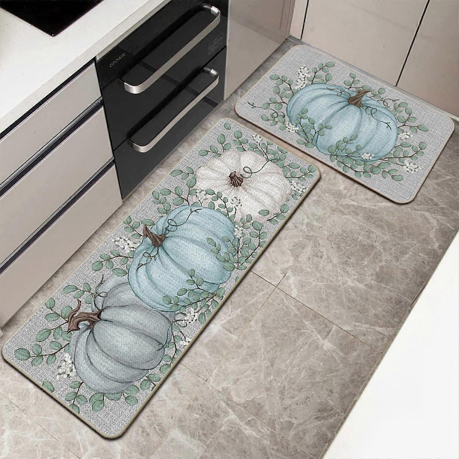 YiFudd Fall Pumpkin Mat 2-Piece Set, Halloween Thanksgiving Decorative Floor Mat, Long Strip Entrance Porch Carpet, Bathroom Kitchen Foot Mat
