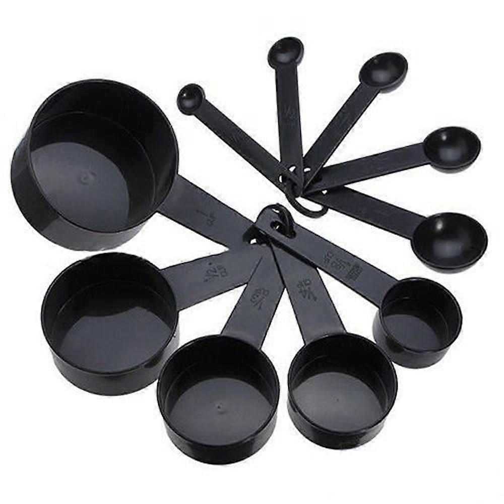YANHAIGONG 10-Piece Measuring Cups and Spoons Set, 5 Plastic Cups & 5 Spoons, Black, Compatible with Baking & Kitchen Tools