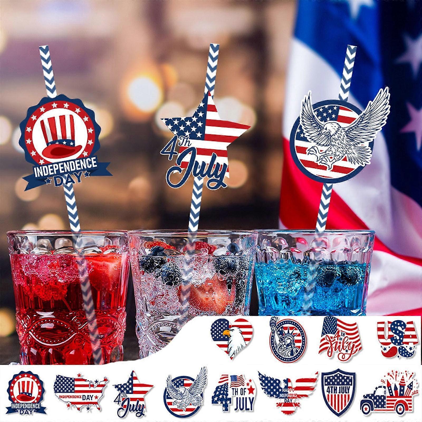 48 Pieces American Flag Paper Straws,Red Blue Paper Drinking Straws for Independence Day Memorial Day July 4th Celebration Supplies by Kiplyki