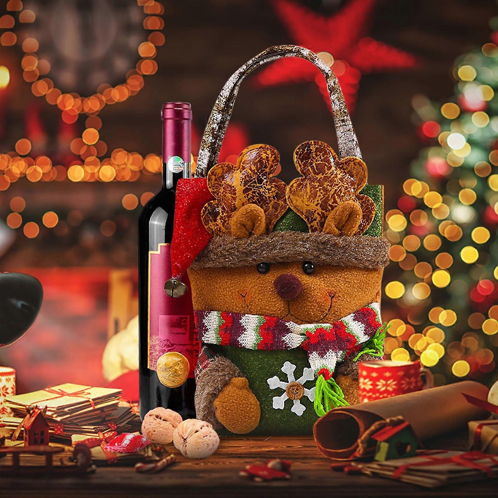 Luckky Christmas Gift Bags, Compatible with Holiday Parties, 11.2×9.1 Inches Elk Deer Design, with Handles for Kids Treats