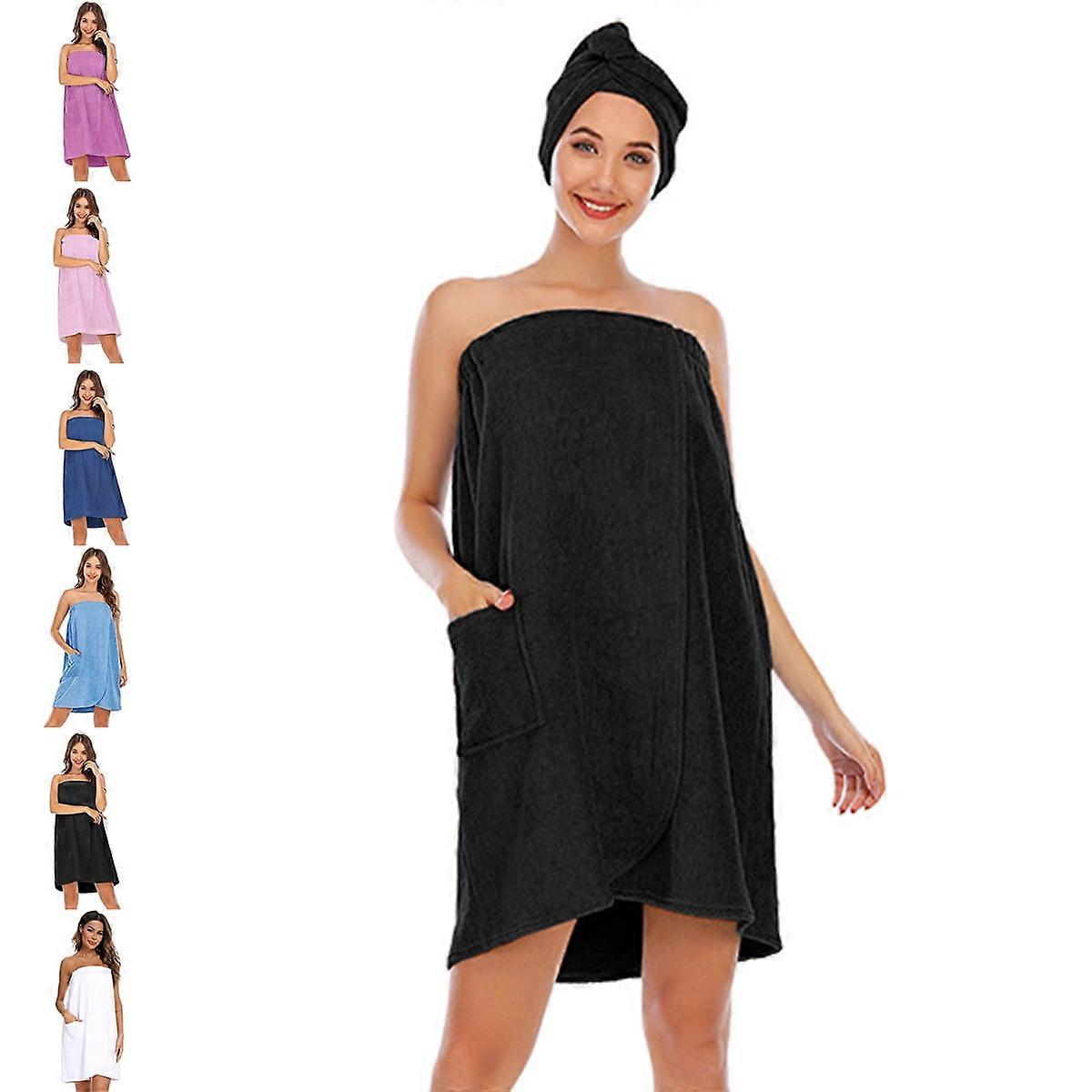 Absorbent Microfiber Spa Bath Wrap Set with Hair Drying Turban for Women, Soft Fleece Terry Robe & Towel Tube Dress (2XL, Black)