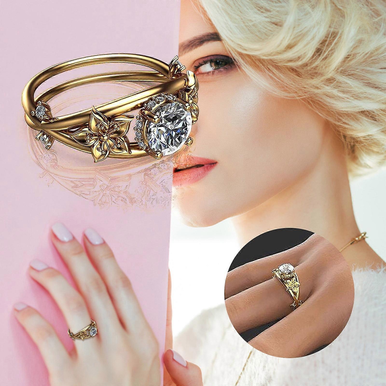 Jacenvly 2024 Wedding Ring Sets Clearance Ladies Fashion Vintage Flower Engraved Diamond Jewelry Jewelry Organizer Gold