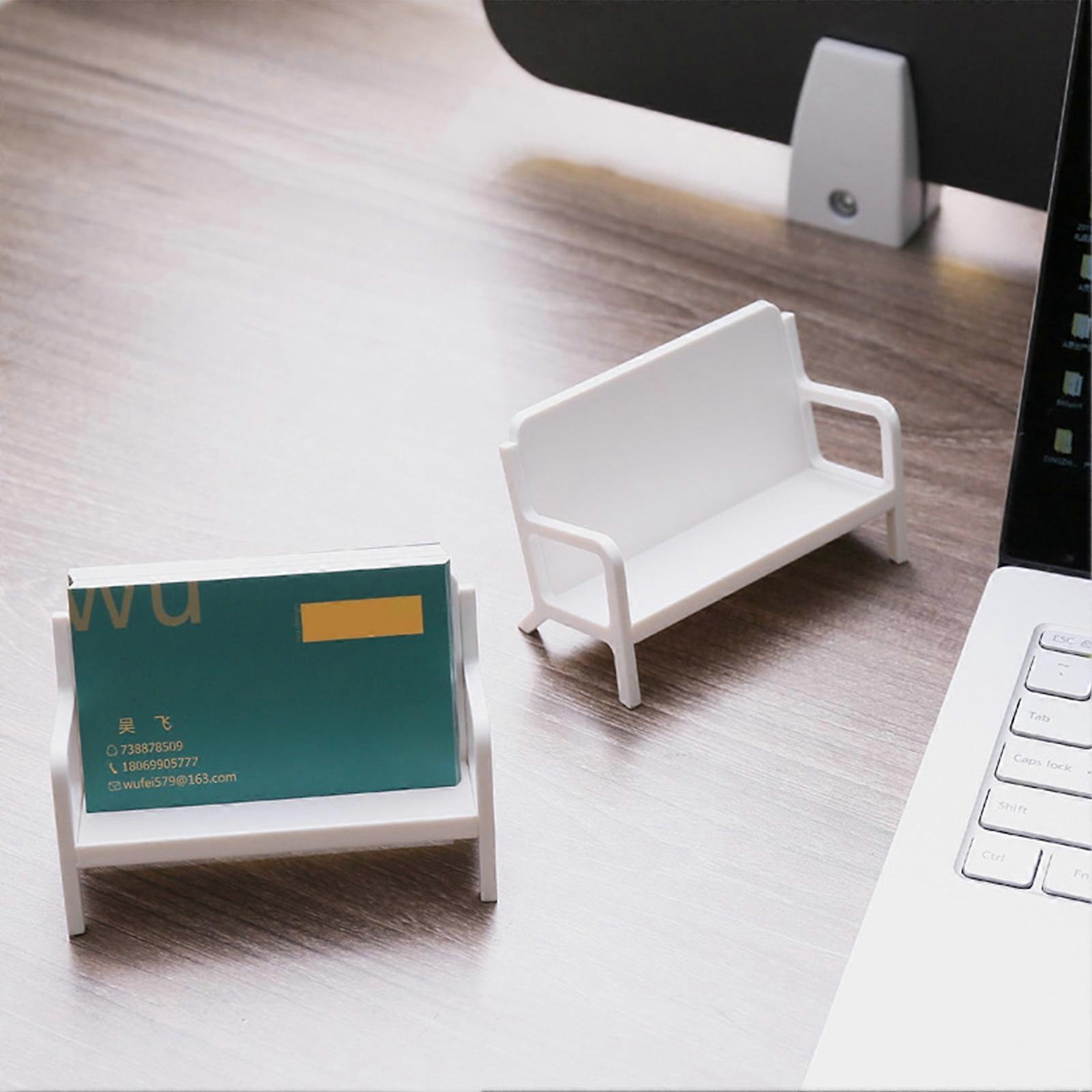 SUSUchens Sofa Shape Business Card Holder Heavy Duty Creative Bench Desktop Name Card Storage Display Stand Organizer Rack Office Supplies White