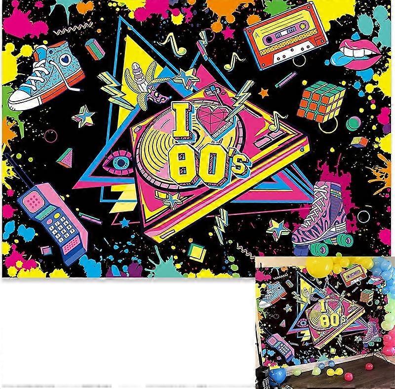 Back to 80's Neon Glow Retro Disco Background, Love 80's Graffiti Splatter Rock Music Party Decor, 80th Birthday Photo Studio Props
