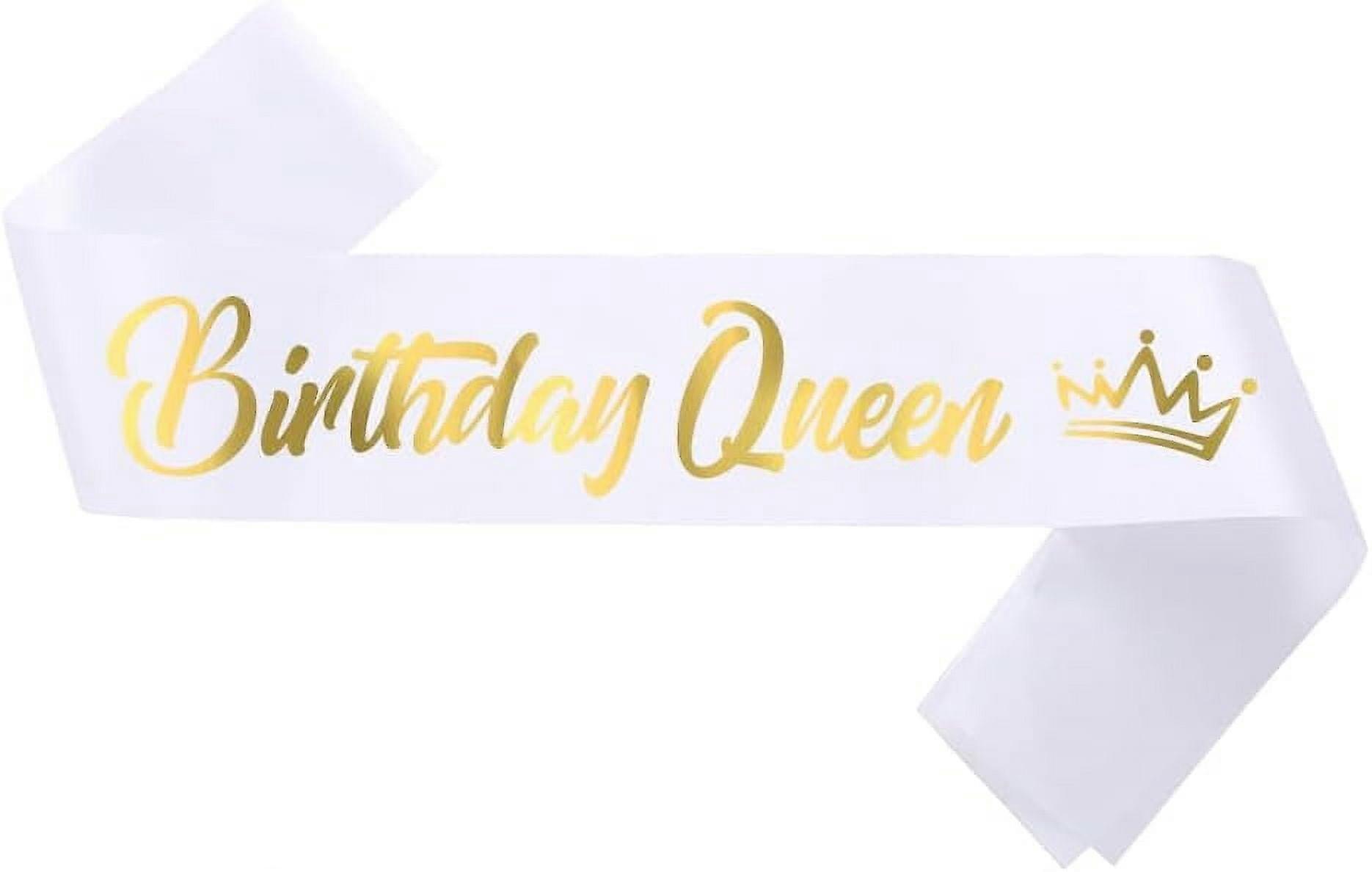 Birthday Queen Sash, Gold Foil Letter White Sash for Women 21st 30th 40th 50th 60th 70th 80th 90th Birthday Party Favors Decorations