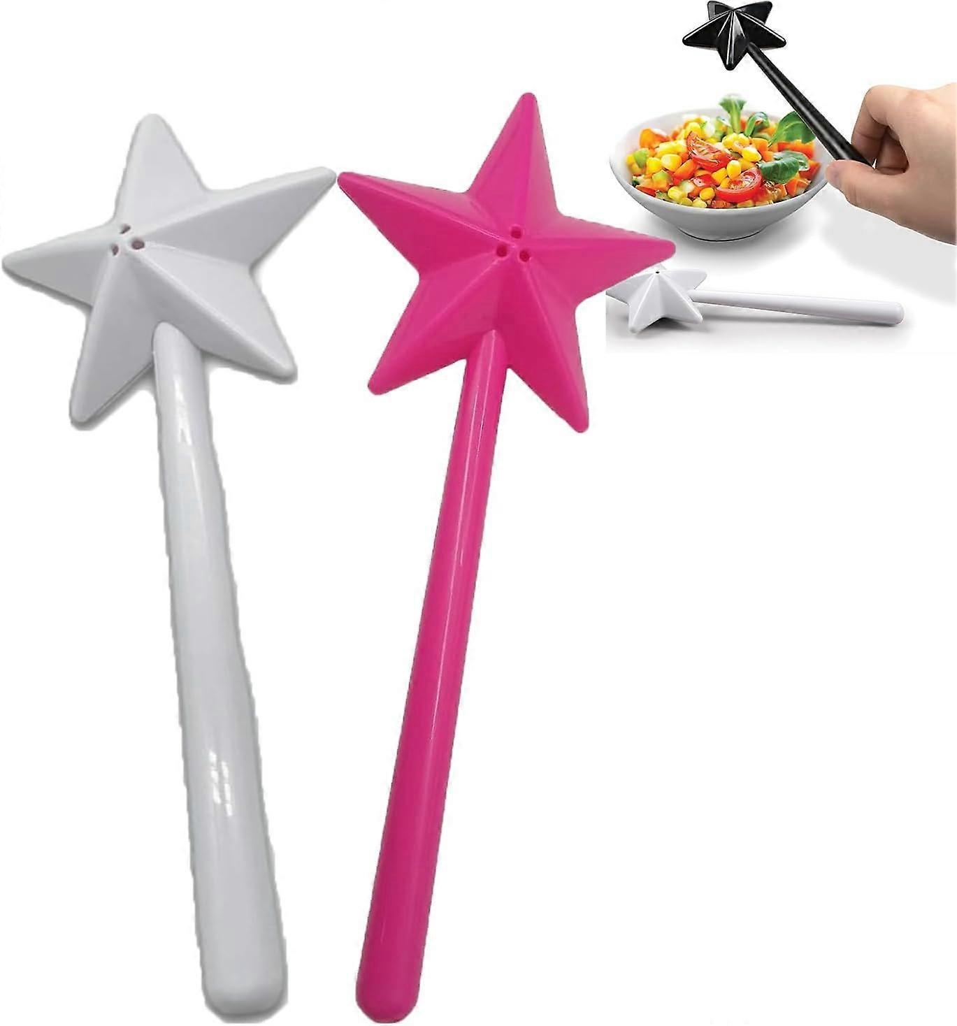 Magical Salt & Pepper Shakers, Fairy Wand Seasoning Bottles with Pentagram Design, Compatible with White + Pink Set (2pcs)
