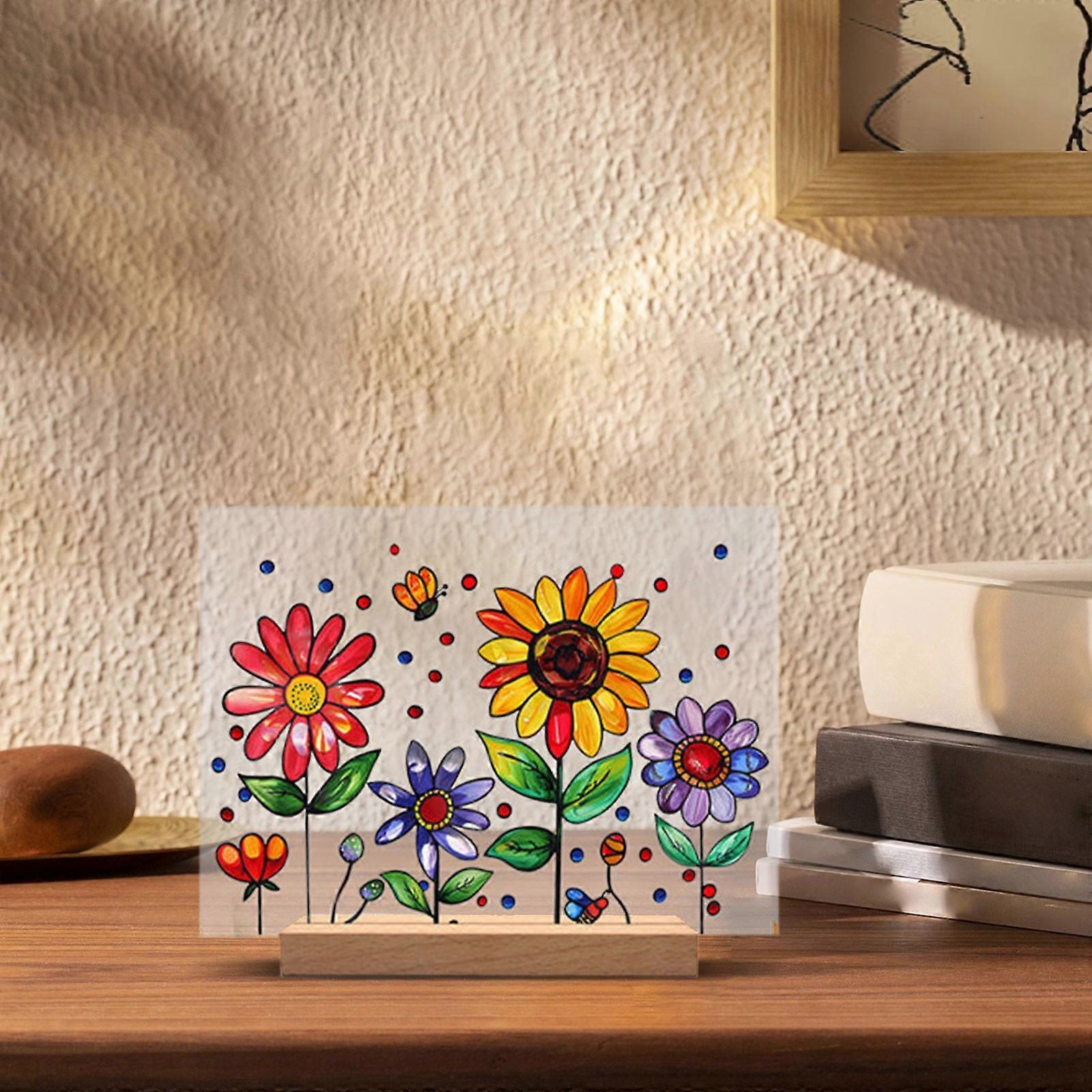 Painted Colorful Flower Pattern Decor Painted Colorful Flower Pattern Imitation Glass Acrylic Decor Artistic Wall Hanging & Decoration Floral Design