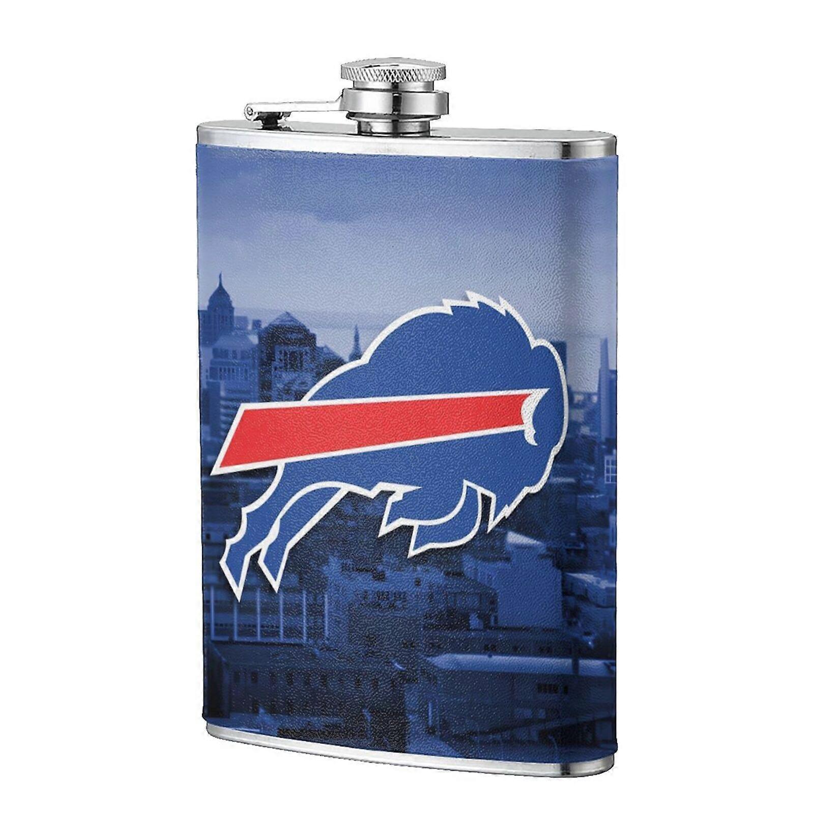 Bills Flagon Hip Flask 8oz, Food-Grade Stainless Steel & Leather, Compatible with Outdoor Sports, Camping, Wedding Groomsman Gift